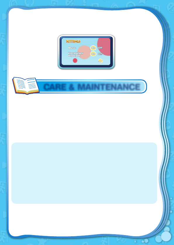Touch the Settings icon to turn the background music and vocabulary