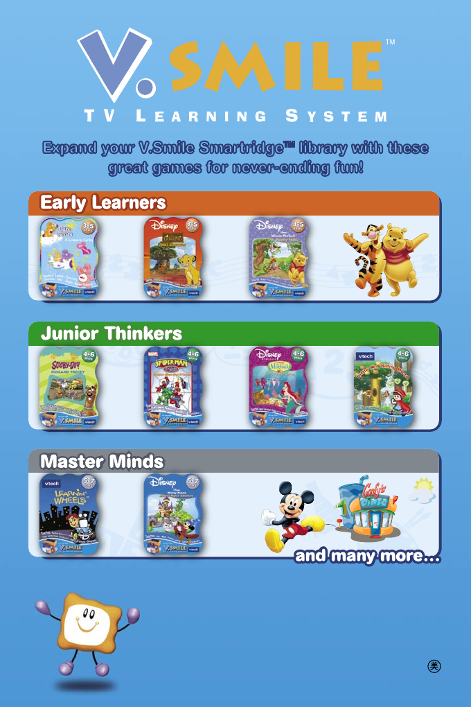 As part of the V.Smile™ TV Learning System, VTech® offers a library of