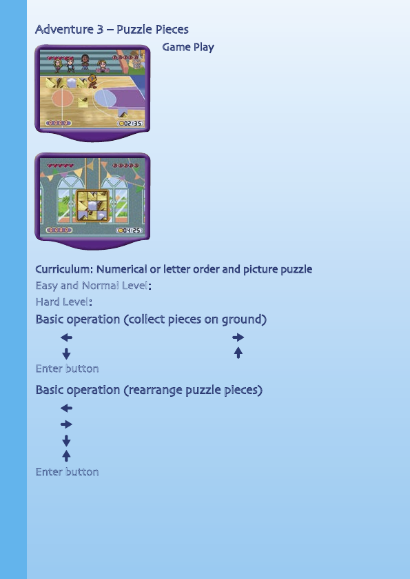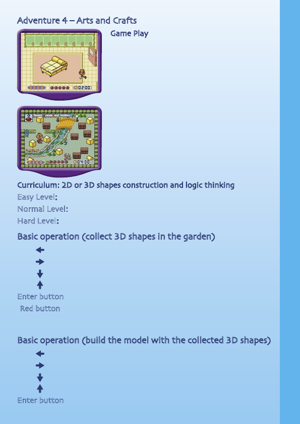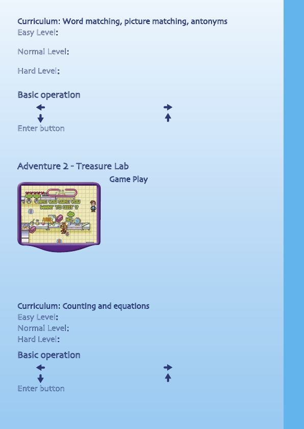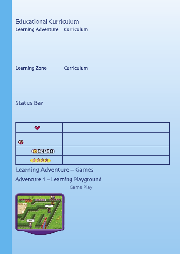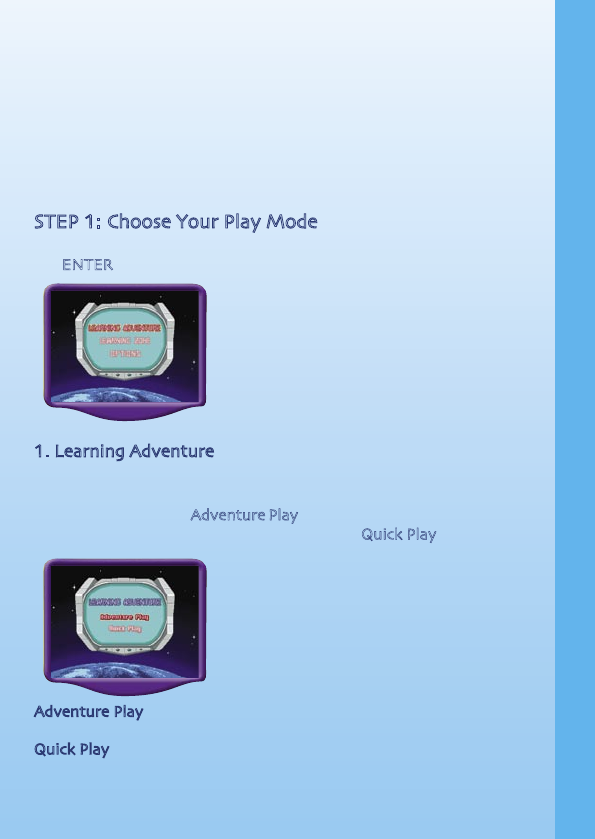 1. The Learning Adventure and Learning Zone each have three difficulty
