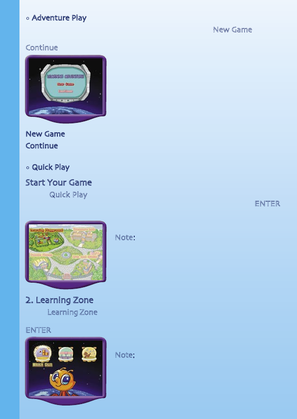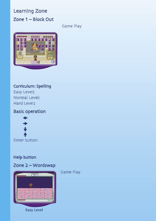 In the Learning Zone menu, choose any of the Learning Zone games you’d