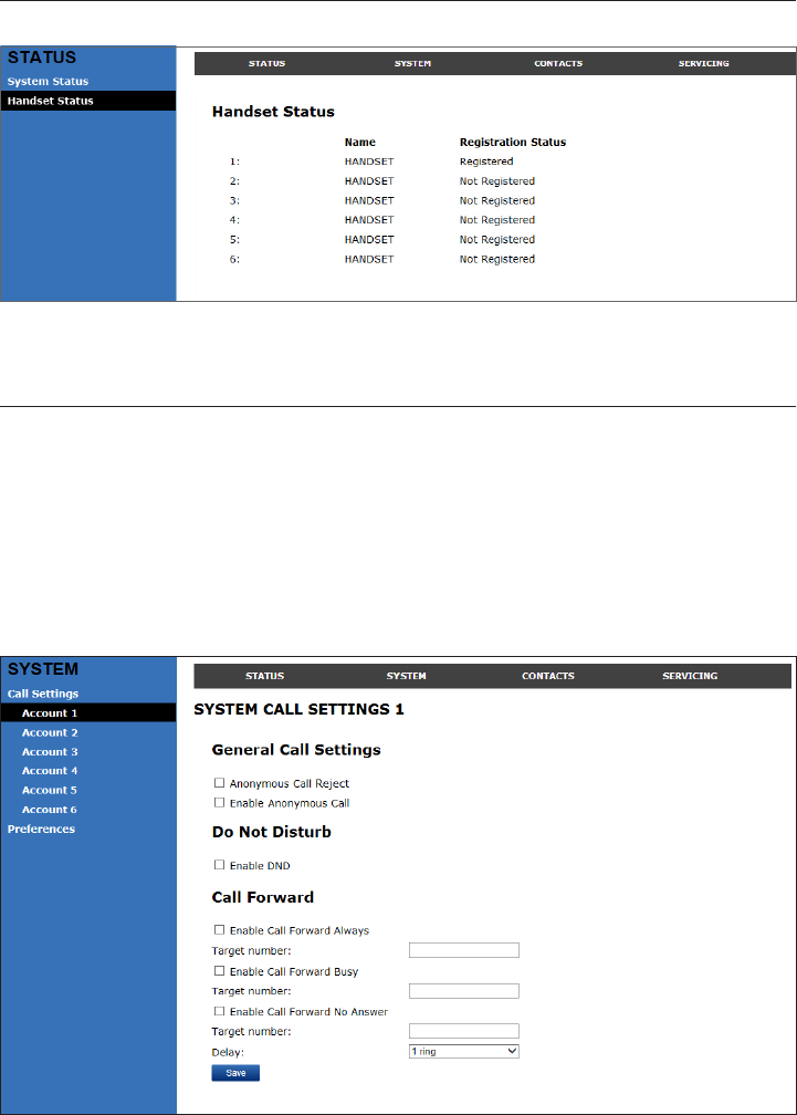 - Viewing handset status
