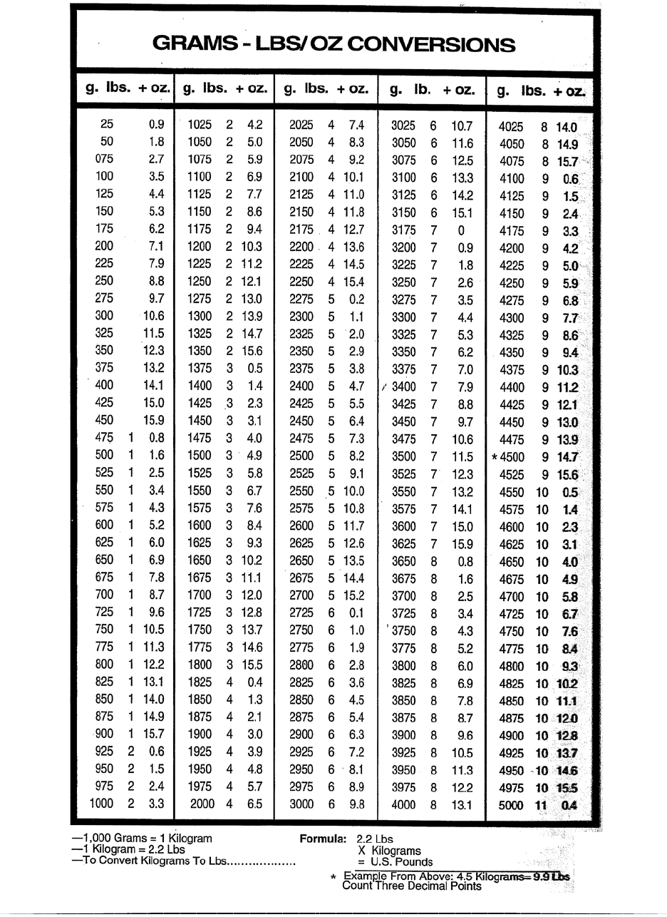 GRAMS – LBS./OZ. CONVERSIONS . . . . . . . . . . . . . . . . . . . . . . . . . . . . . . . . . . . . . 16