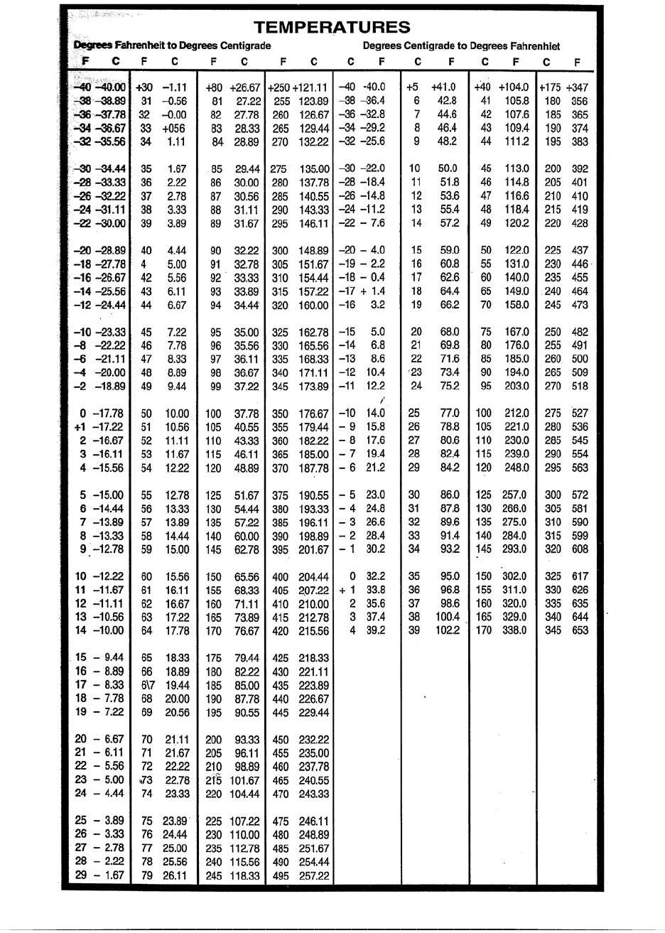TEMPERATURES CONVERSIONS . . . . . . . . . . . . . . . . . . . . . . . . . . . . . . . . . . . . . . 17