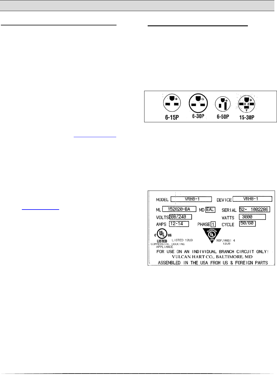1. Type of gas and/or specific electric characteristics (voltage, phase and hertz).
