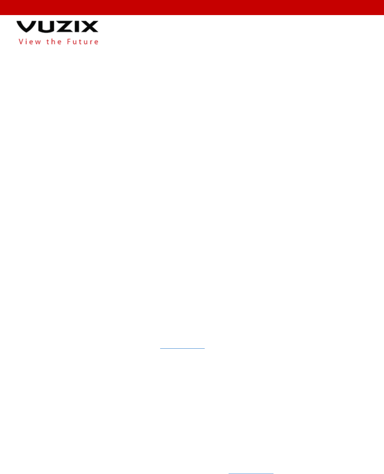 25 Hendrix Road, Suite A, West Henrietta NY, 14620 I P 585 359 5900 I F 585 359 4172 I E contact@vuzix.com I www.vuzix.com
