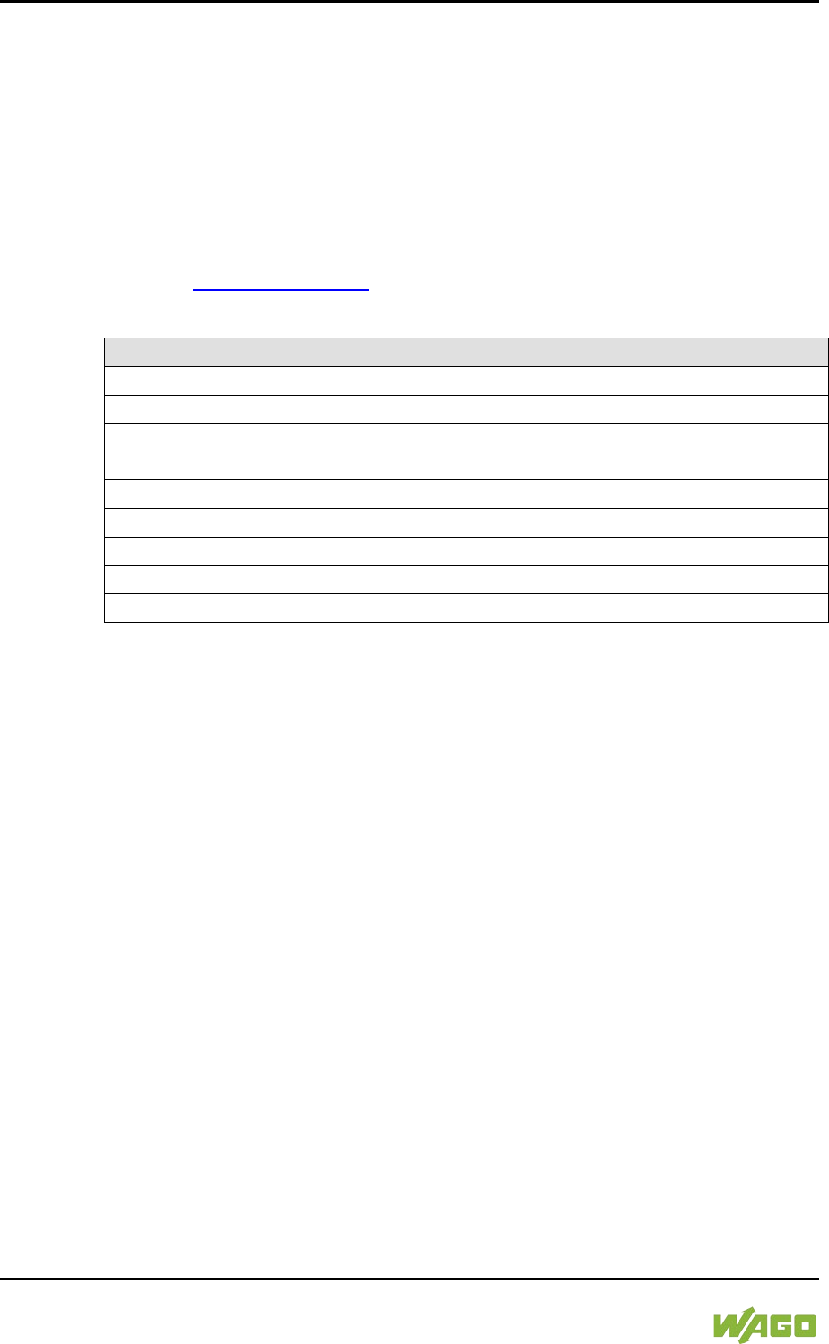 408 List of Tables WAGO-I/O-SYSTEM 750