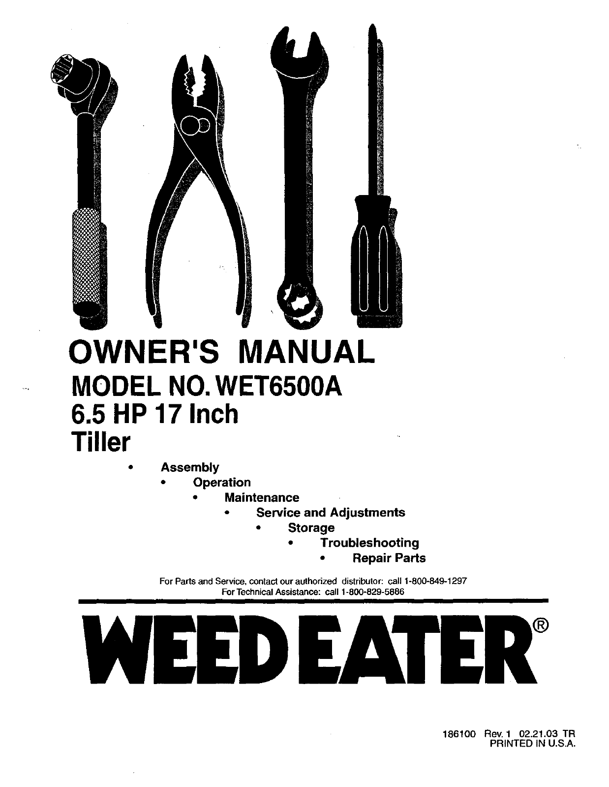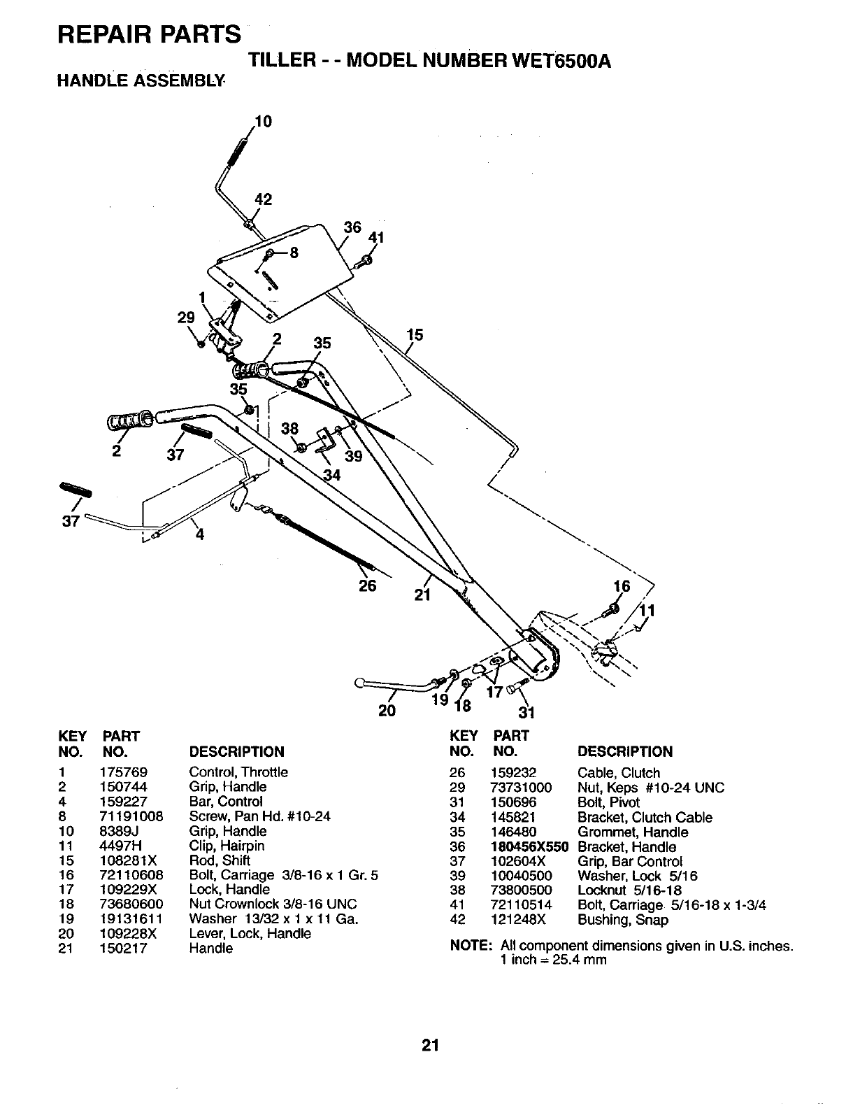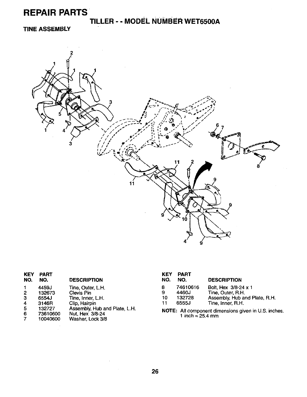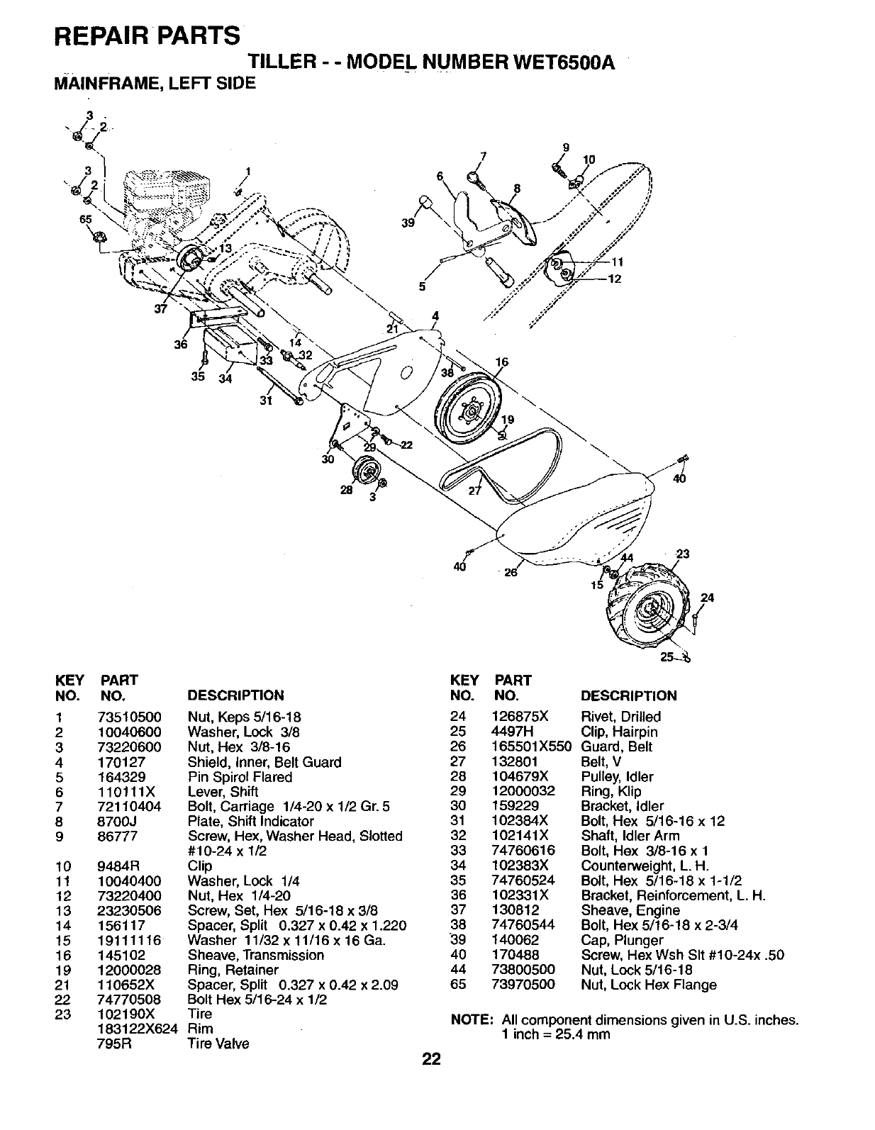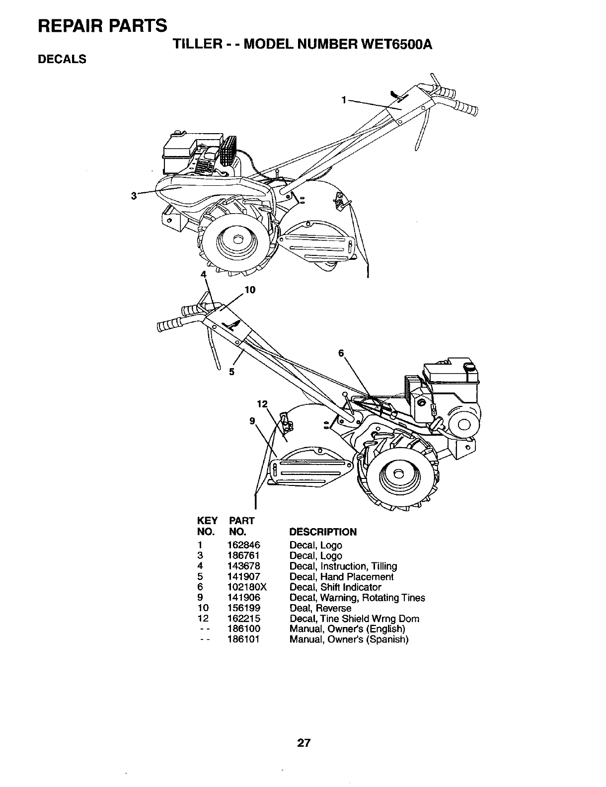 REPAIR PARTS TILLER - -MODEL NUMBER WET6500A