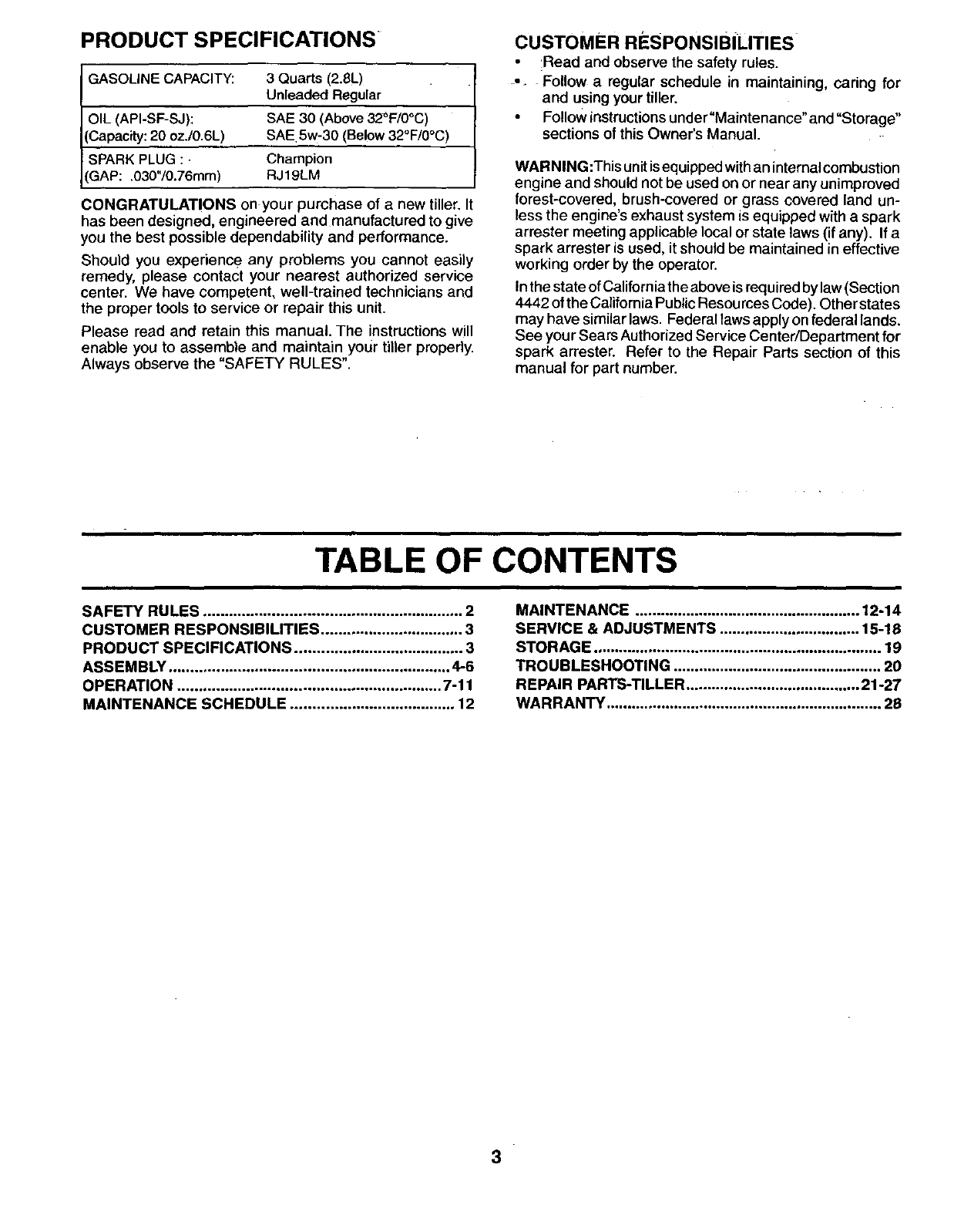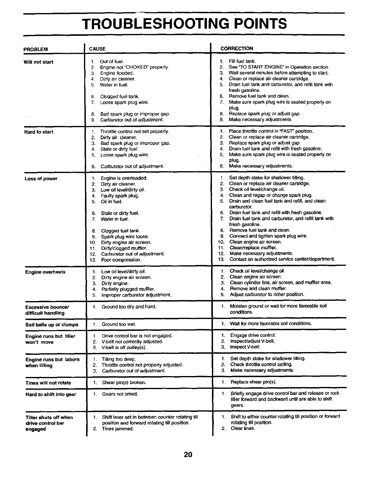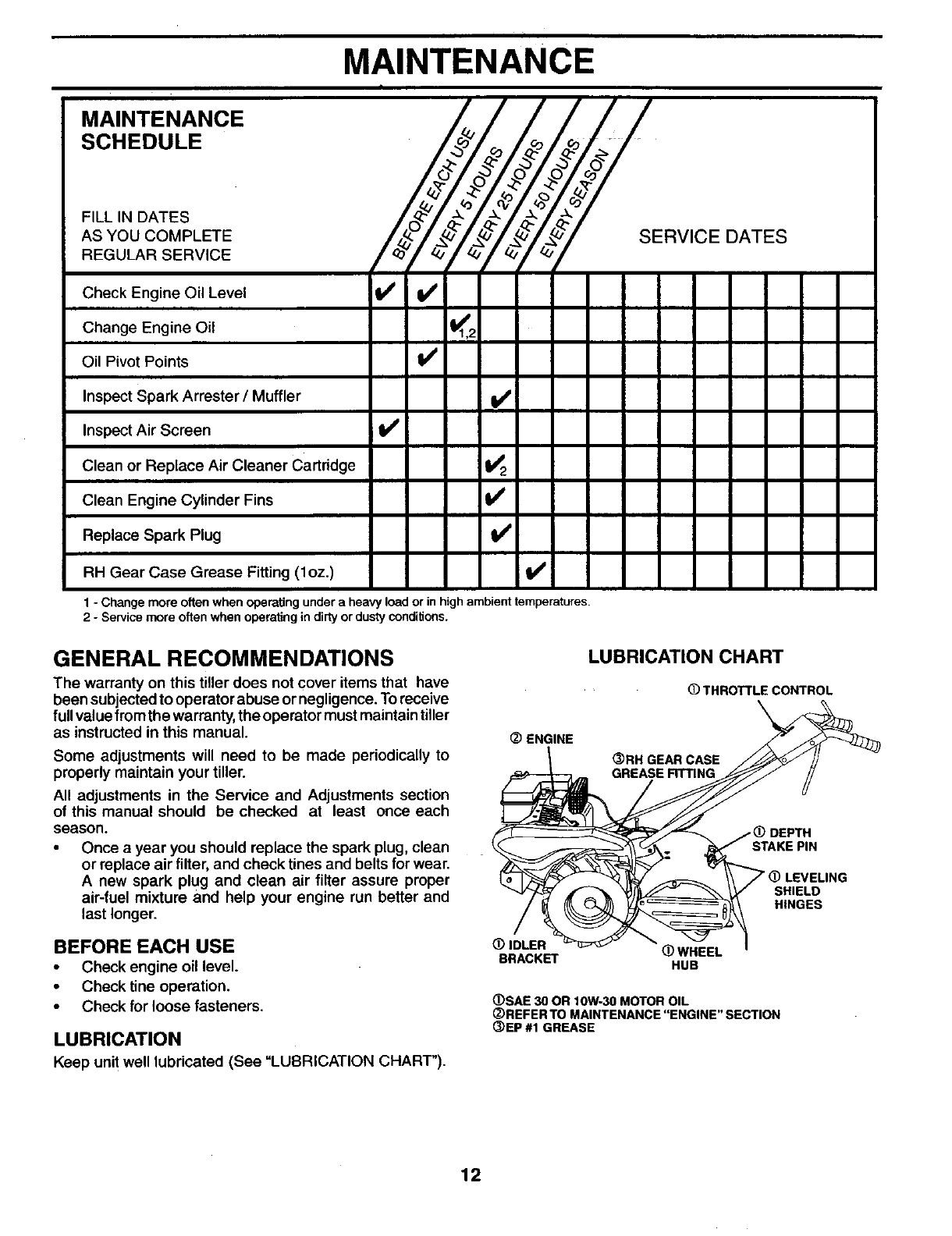 5. Exclusions: Excluded from this Warranty are belts, tines, tine adapters, normal wear, normal adjustments, stan-