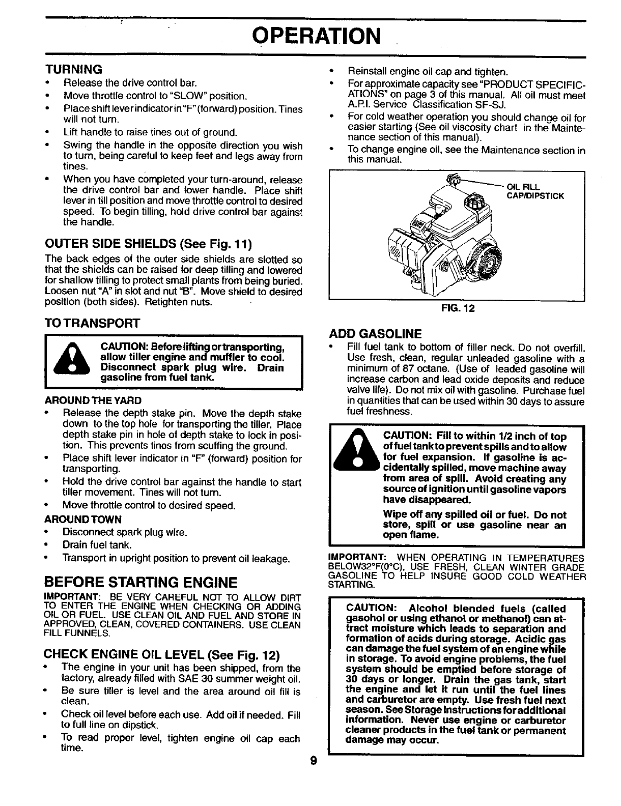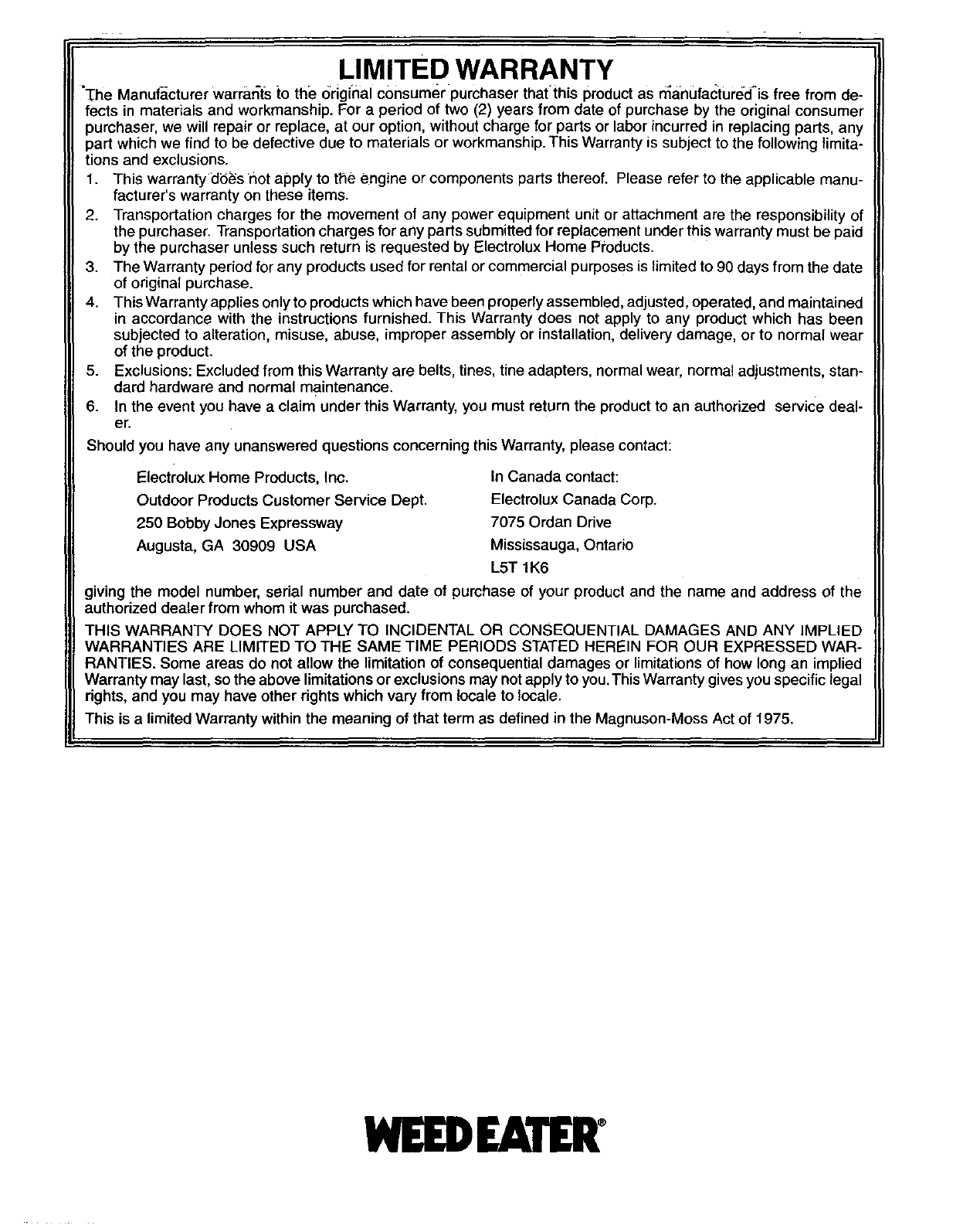 WEEDEATER Rear Tine, Gas Tiller Manual L0311005