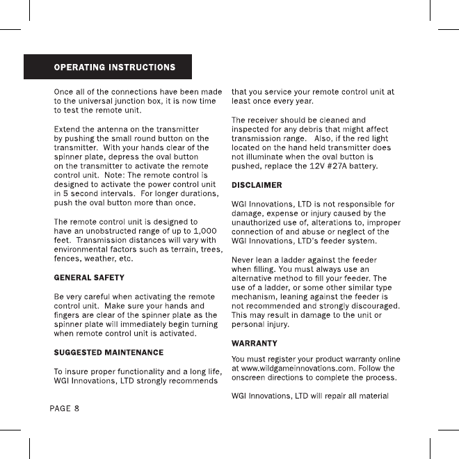 WGI Innovations, Ltd. Remote control unit Users Manual
