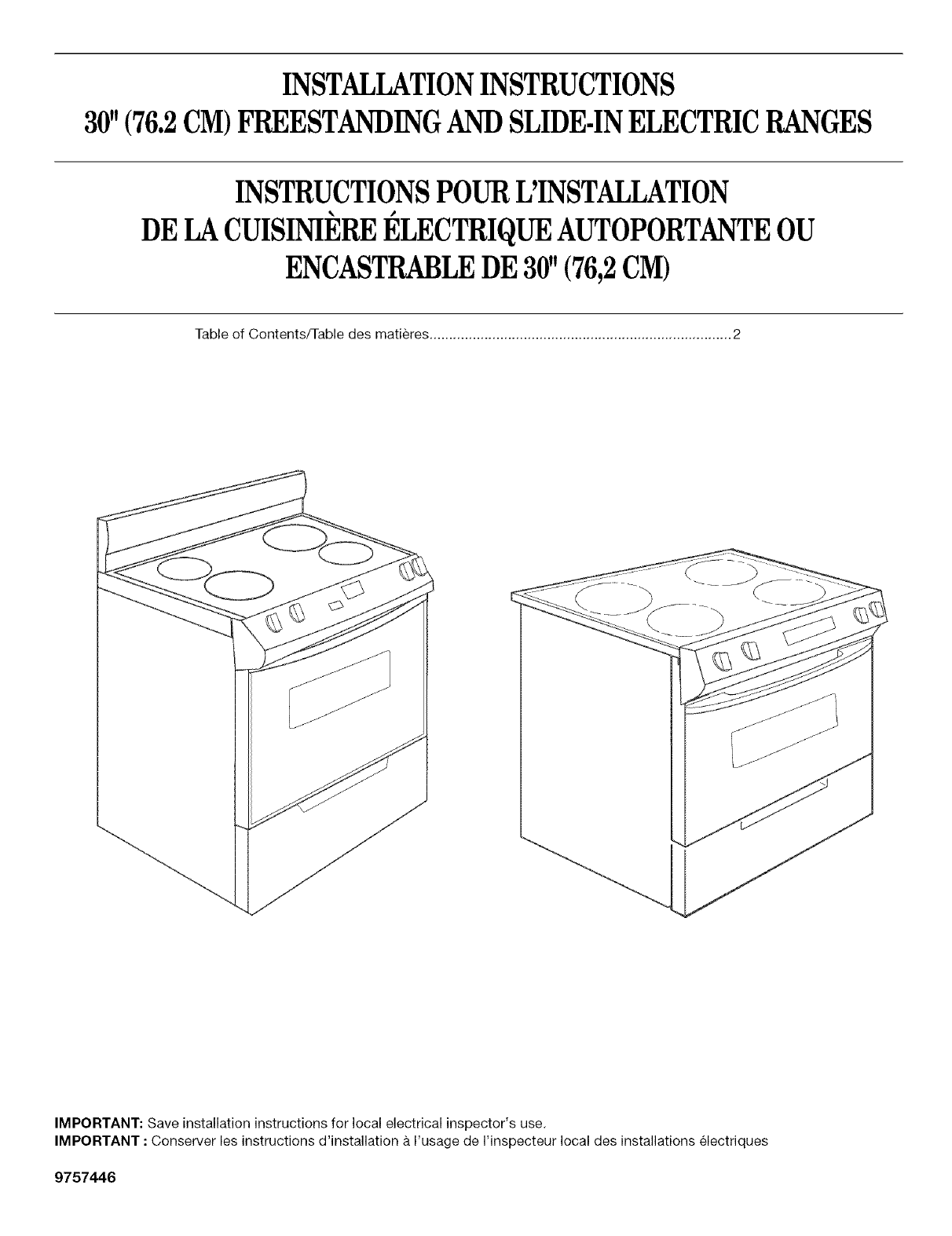 30"(76.2CM)FREESTANDINGANDSLIDE-INELECTRICRANGES