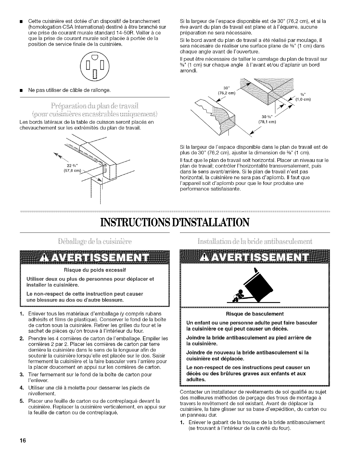 INSTRUCTIONS D'INSTALLATION ............................................. 16