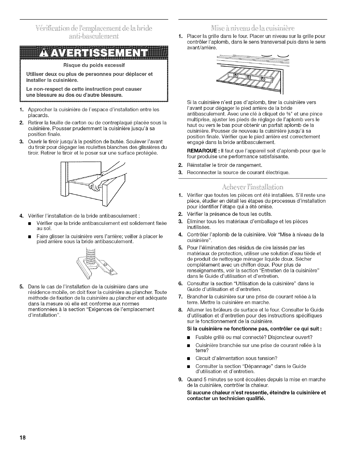 4. Contr61er I'aplomb de la cuisiniere. Voir "Mise a niveau de la