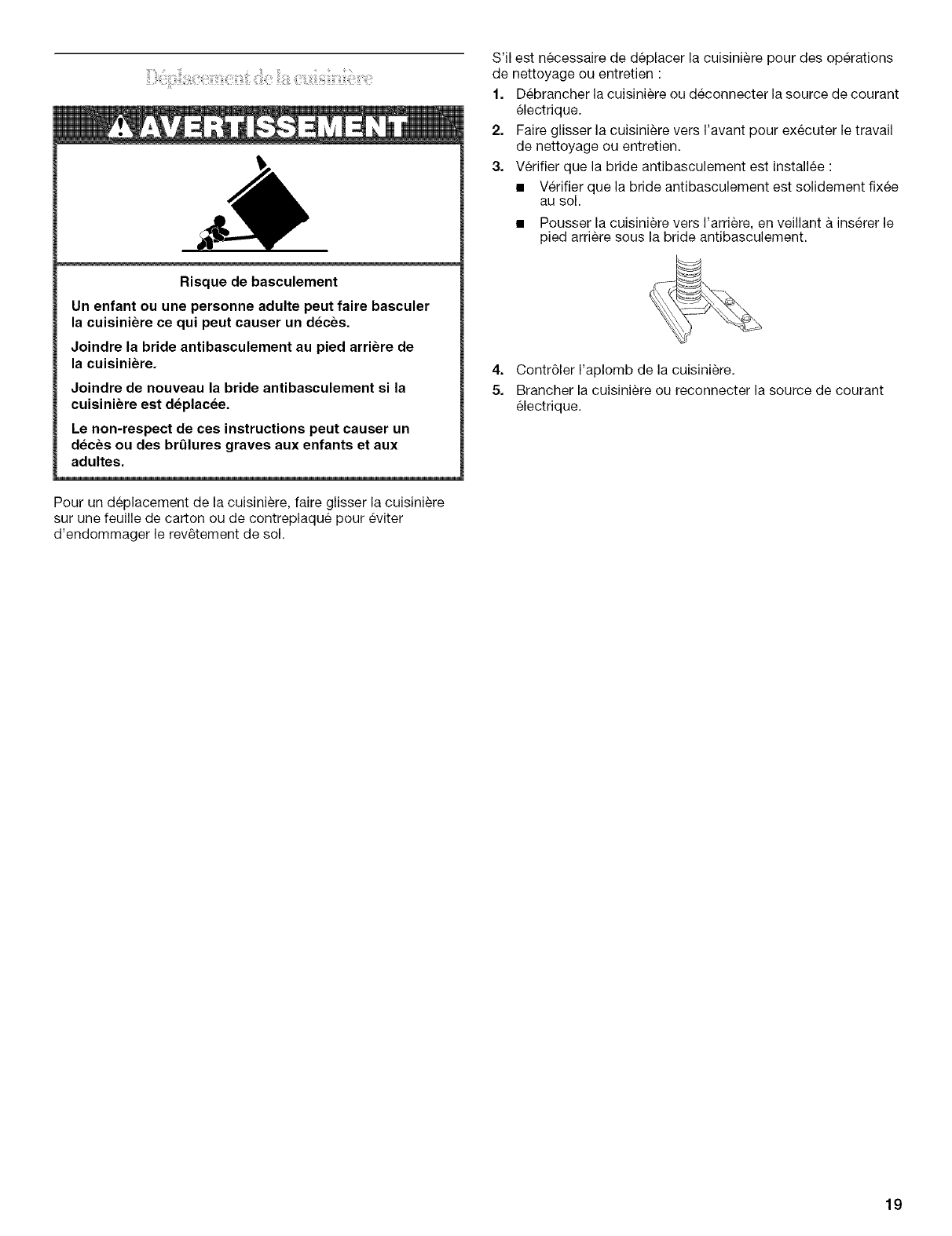 S'il est necessaire de deplacer la cuisiniere pour des operations