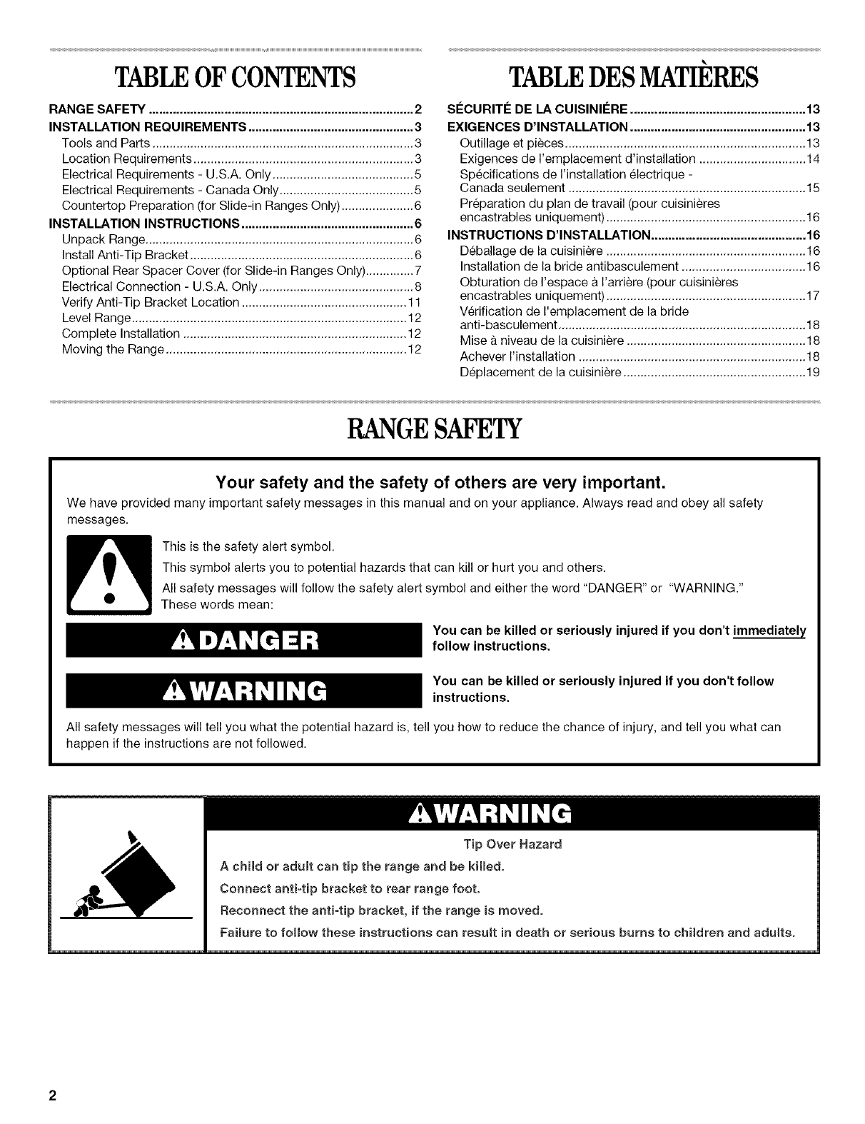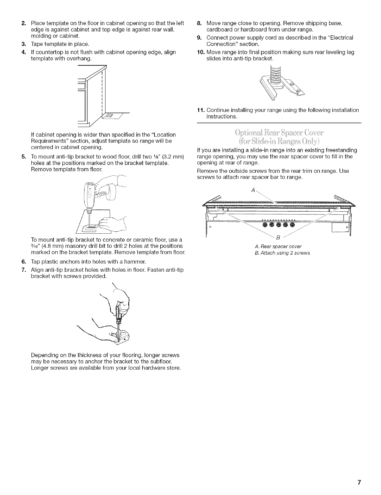 Optional Rear Spacer Cover (for Slide-in Ranges Only) .............. 7