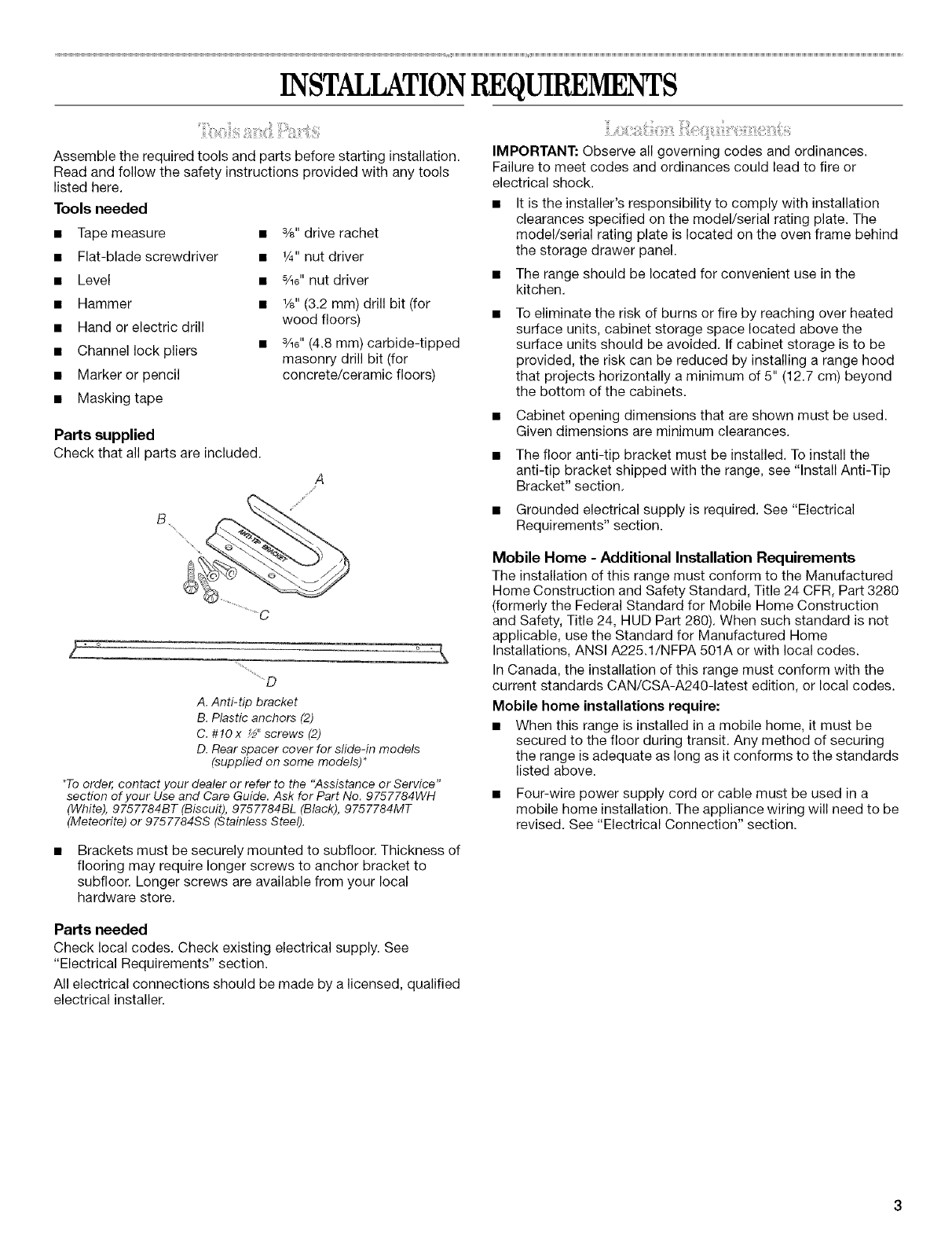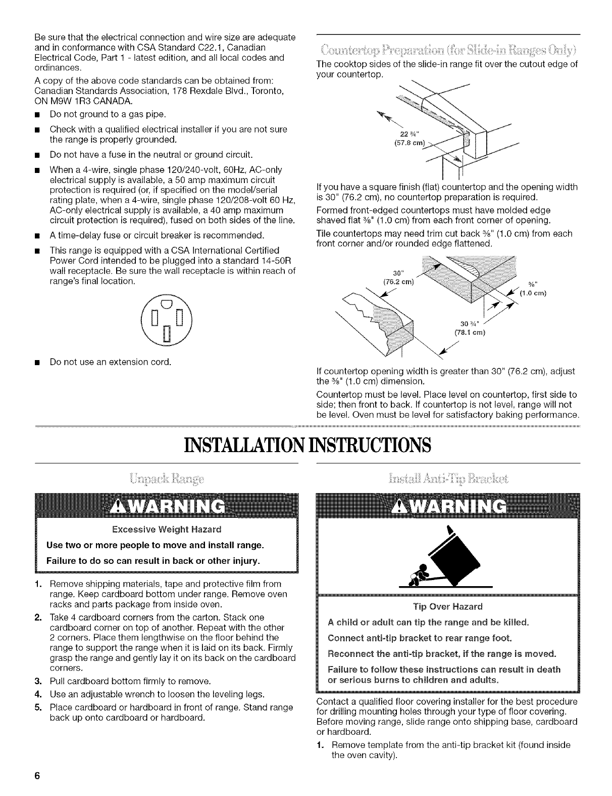 Countertop Preparation (for Slide-in Ranges Only) ..................... 6