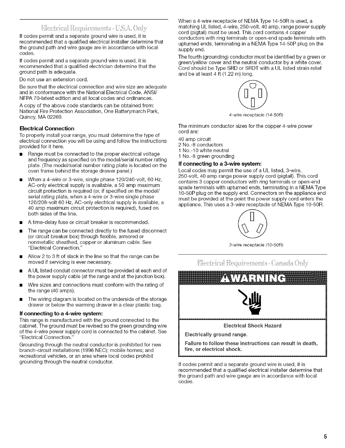 Electrical Requirements - U.S.A. Only ......................................... 5