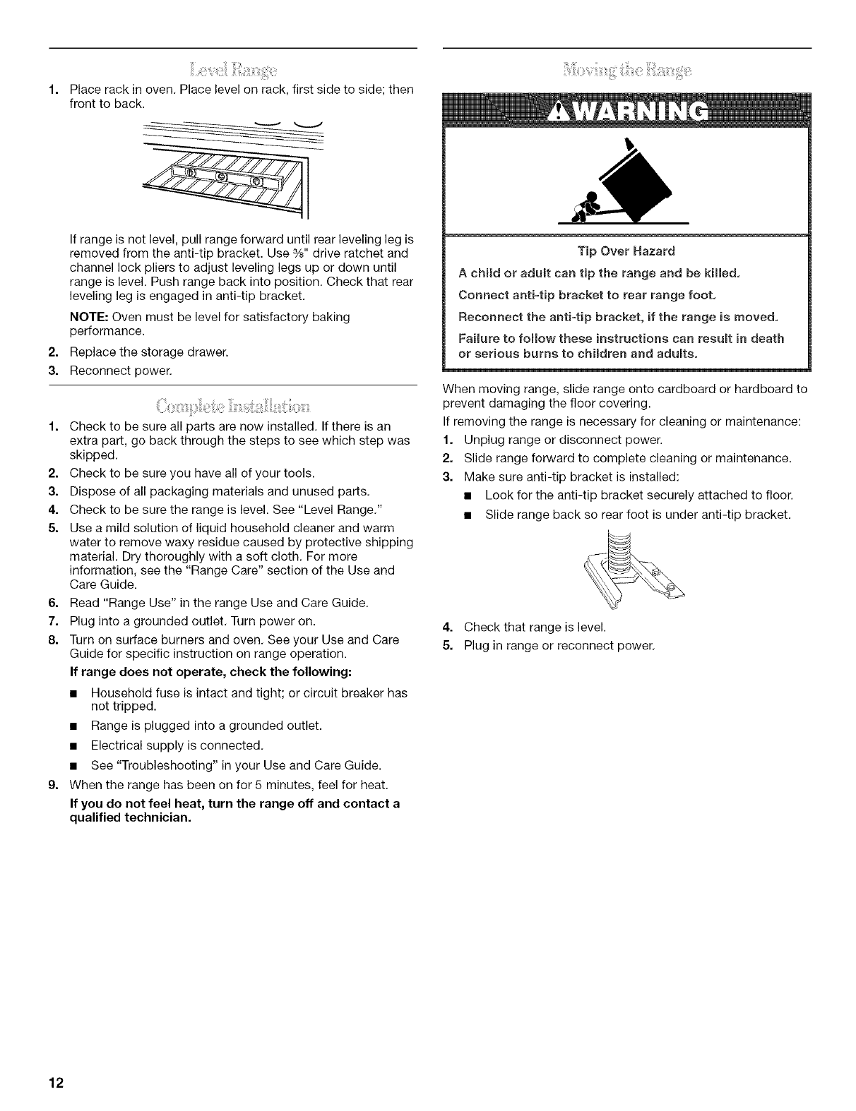 • Faire glisser la cuisiniere vers I'arri_re; veiller a placer le