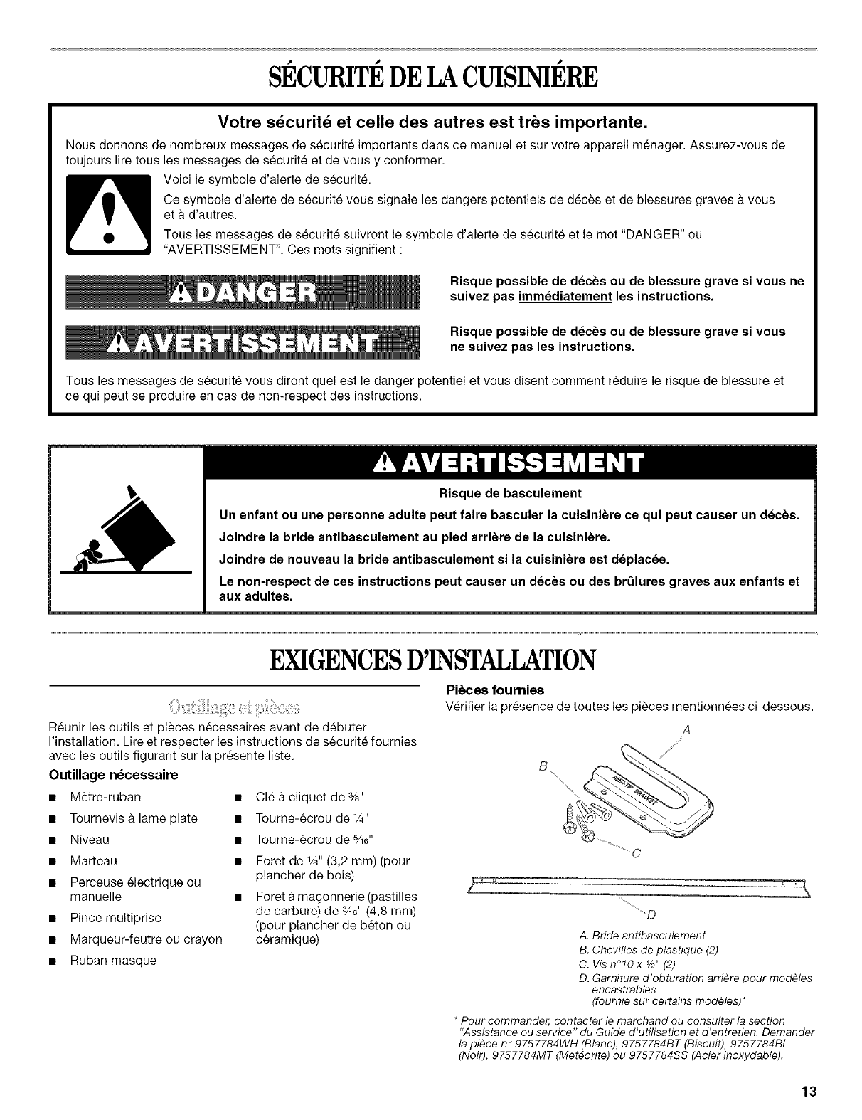S¢CURITI :!:DE LA CUISINICRE ................................................... 13