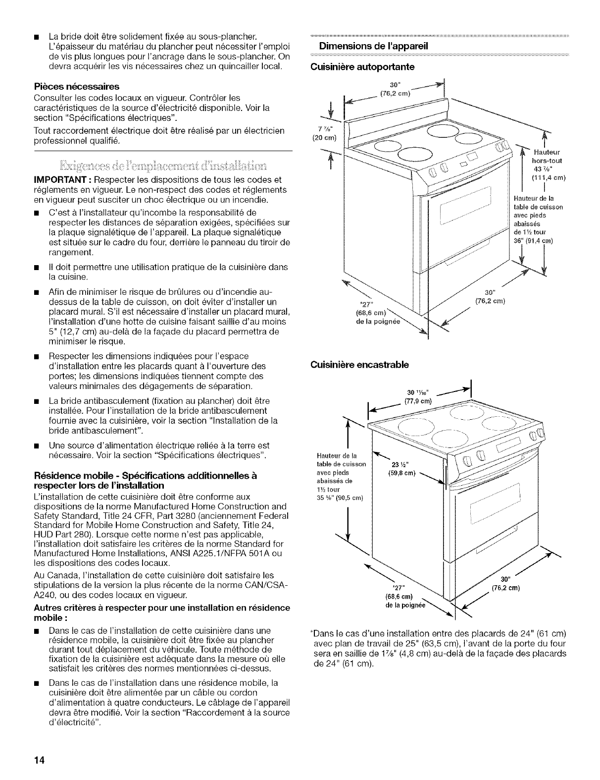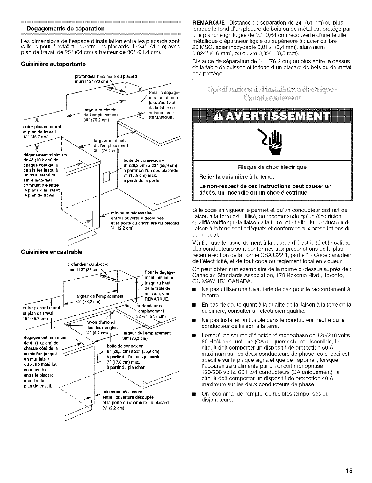 IMPORTANT : Conserver les instructions d'installation a I'usage de I'inspecteur local des installations electriques
