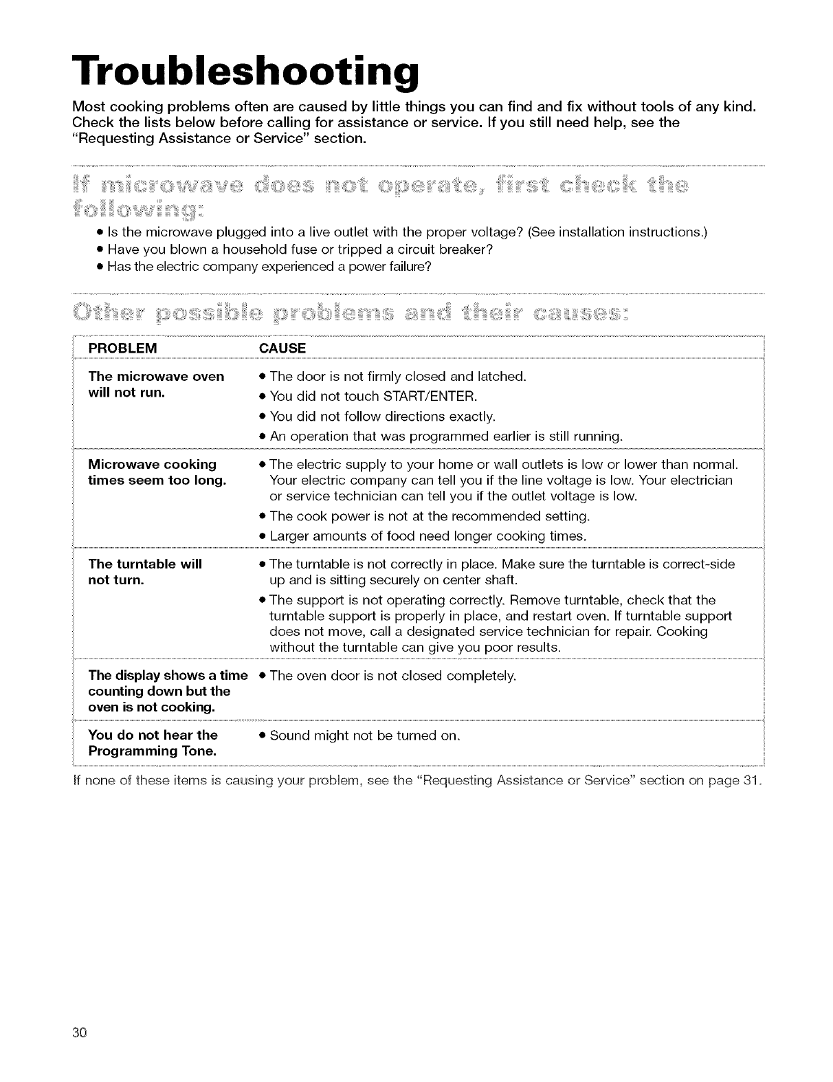 If none of these items is causing your problem, see the "Requesting Assistance or Service" section on page 31.