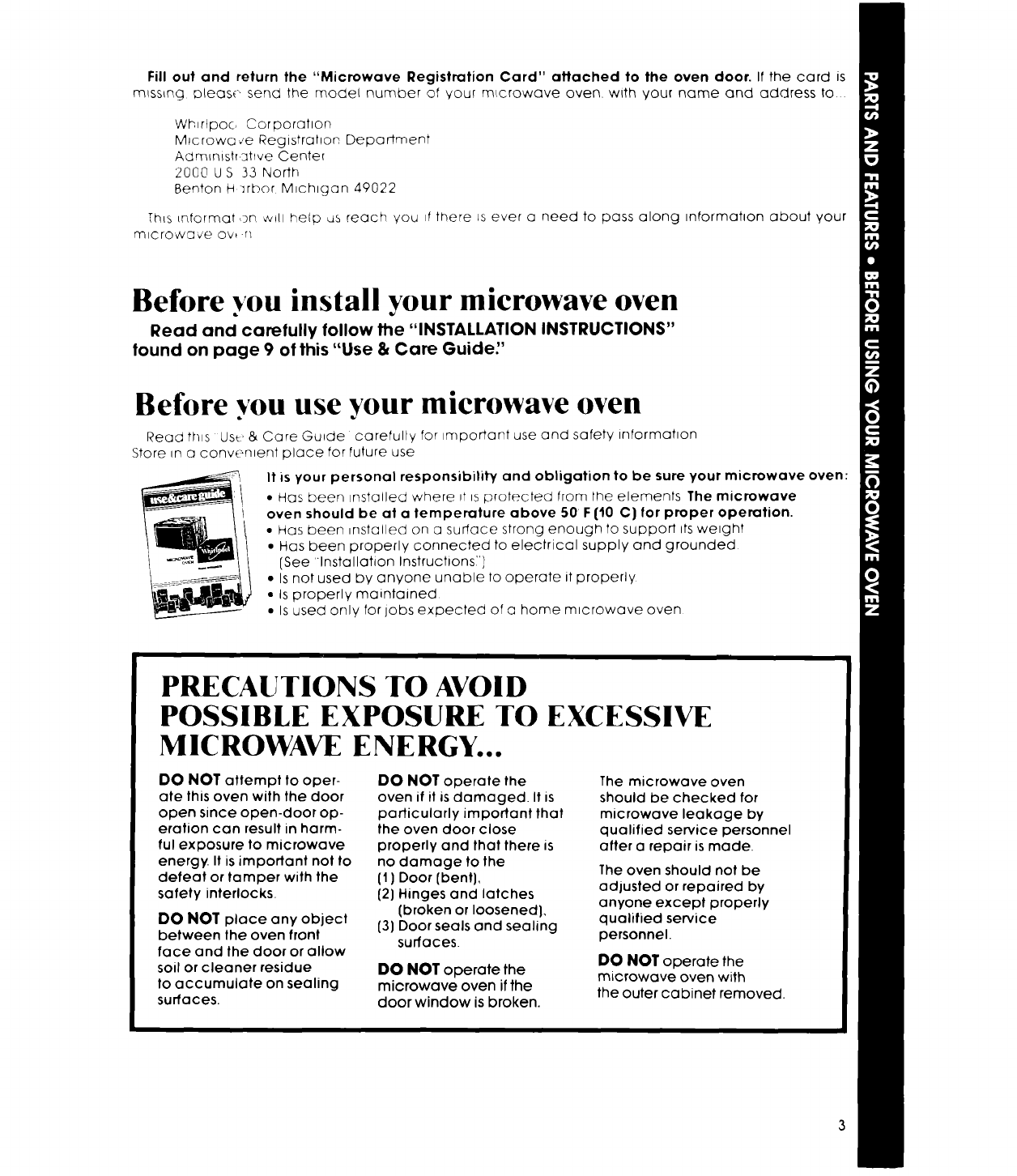 Fill out and return the *'Microwave Registration Card" attached to the oven door. If the card is