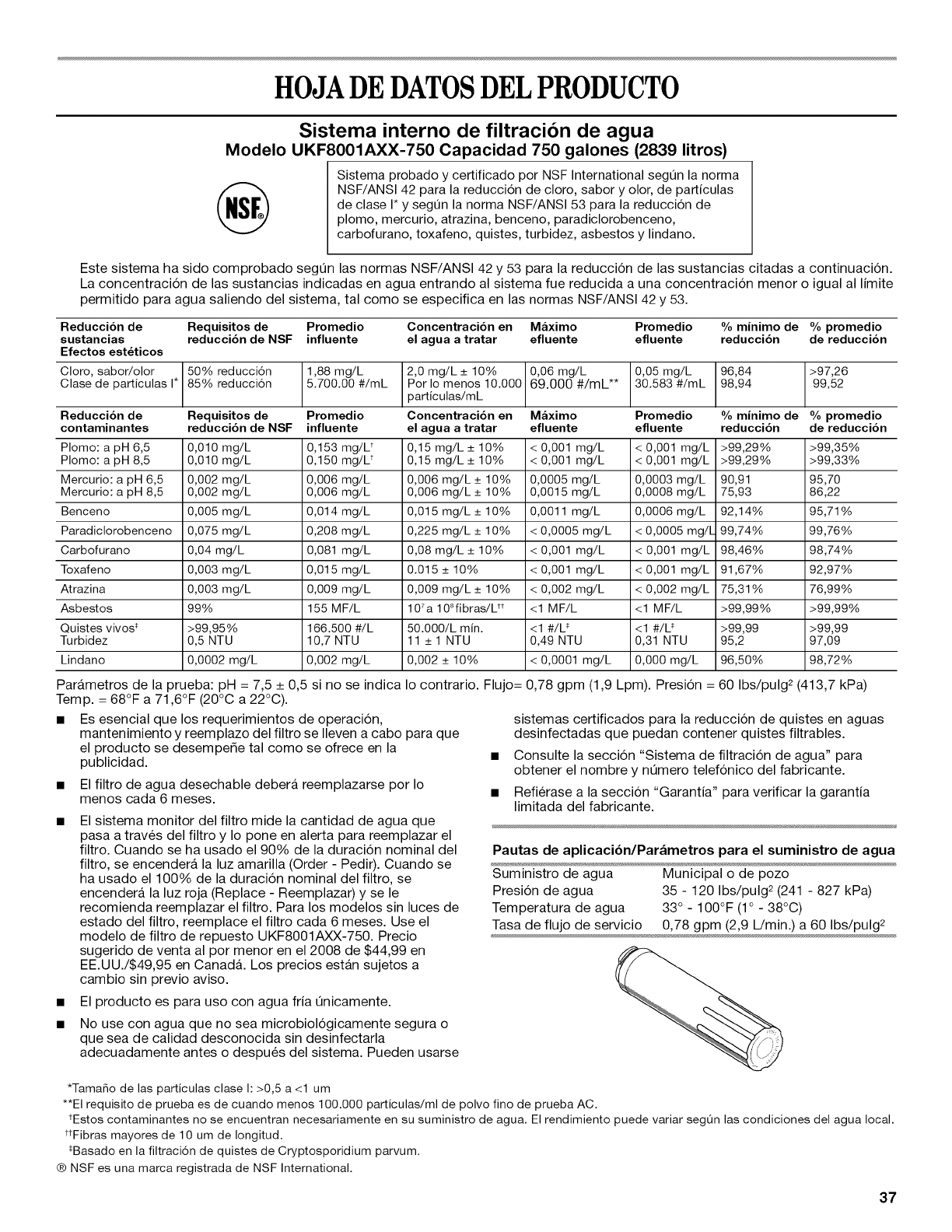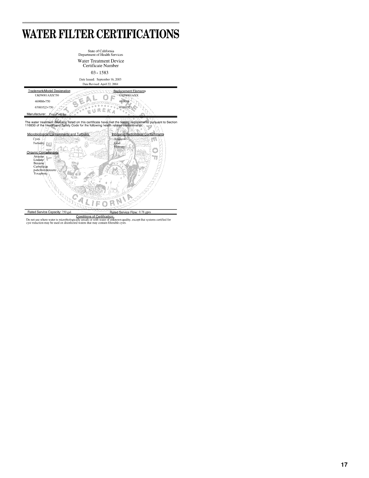 WATER FILTER CERTIFICATIONS .............. 17