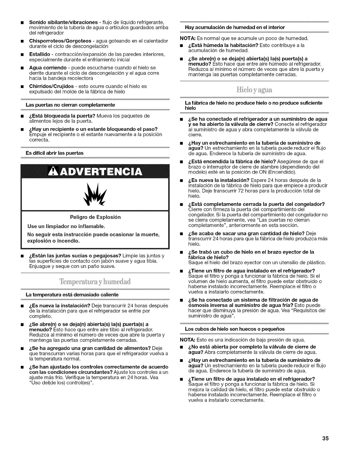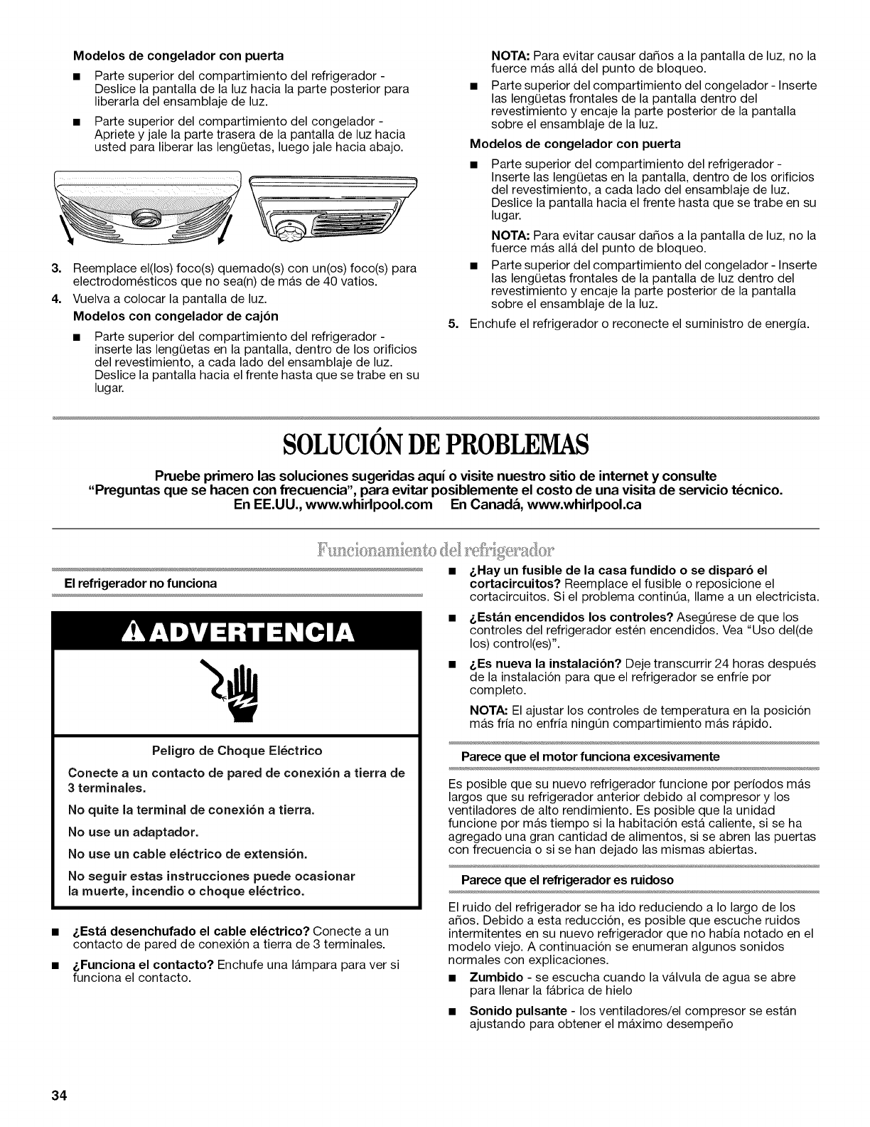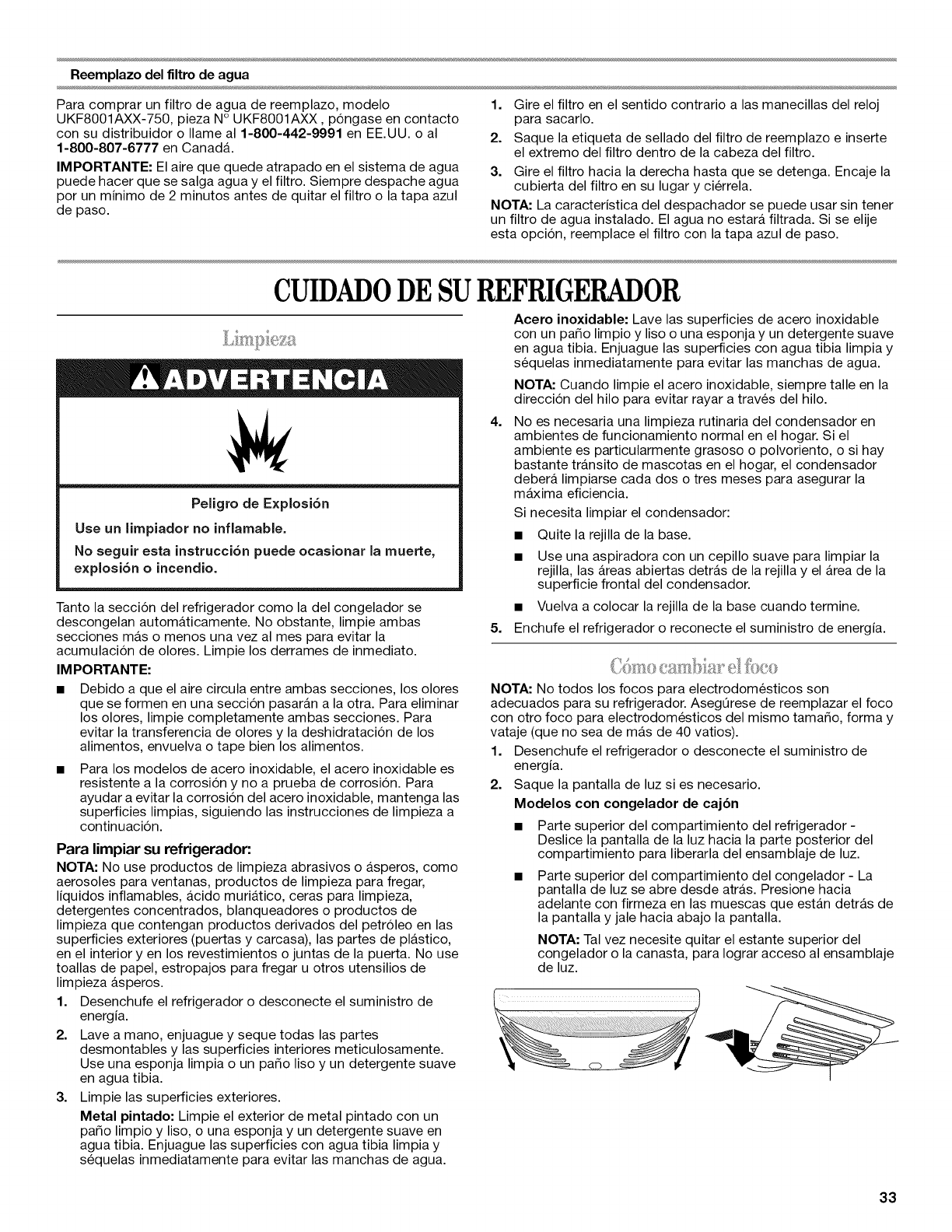 CUlDADO DE SU REFRIGERADOR ............. 33
