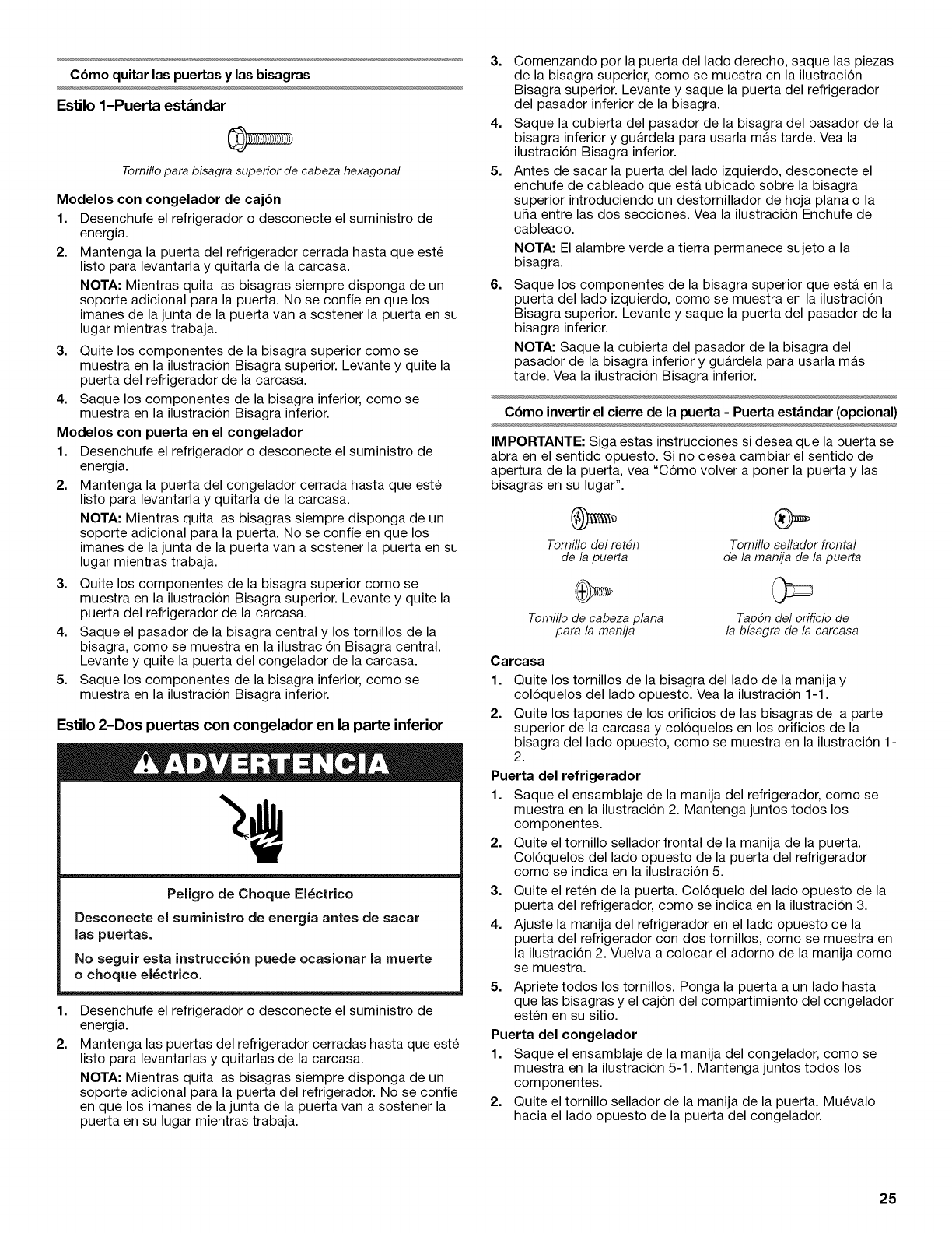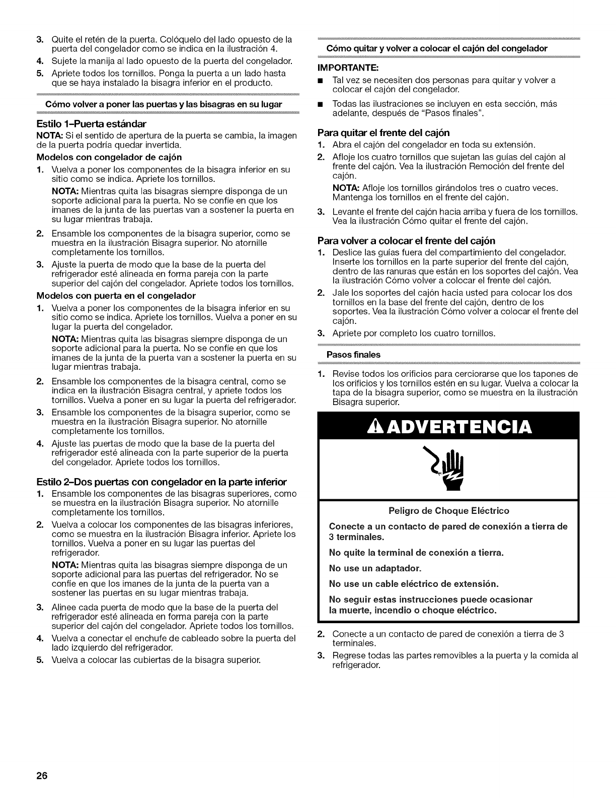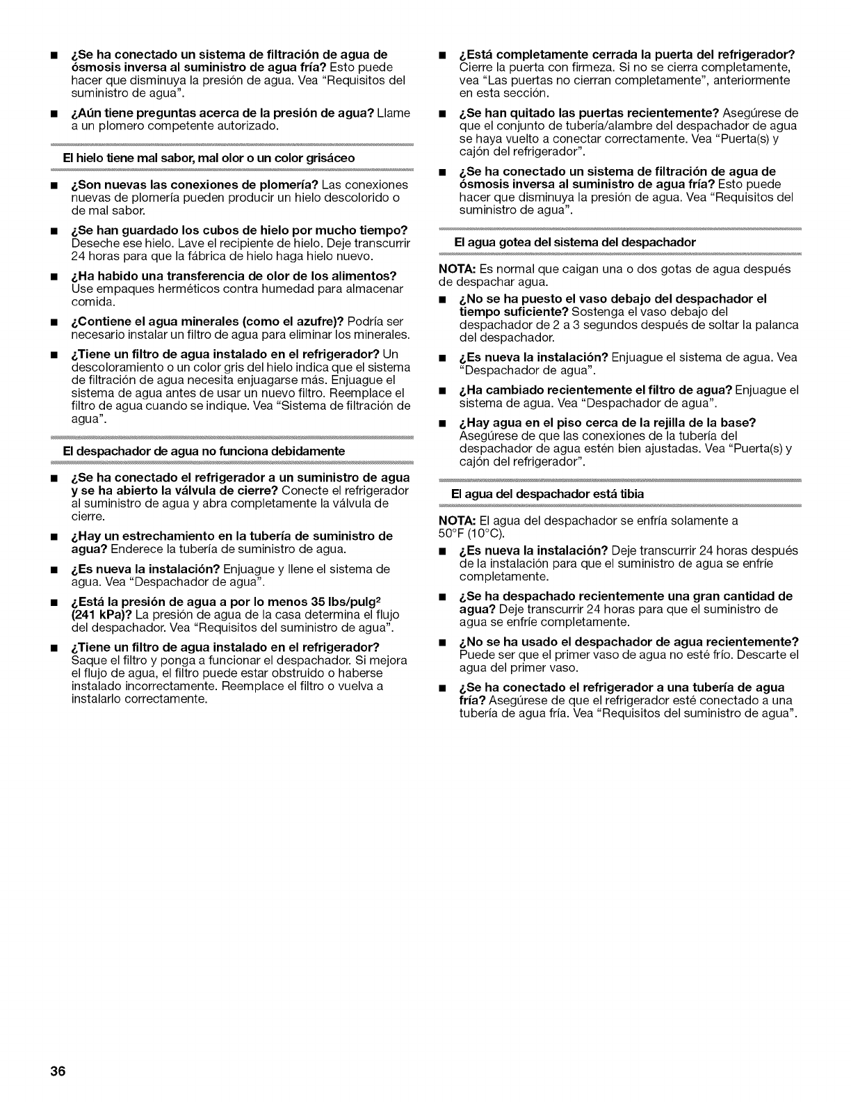 CUlDADO DE SU REFRIGERADOR ............. 33