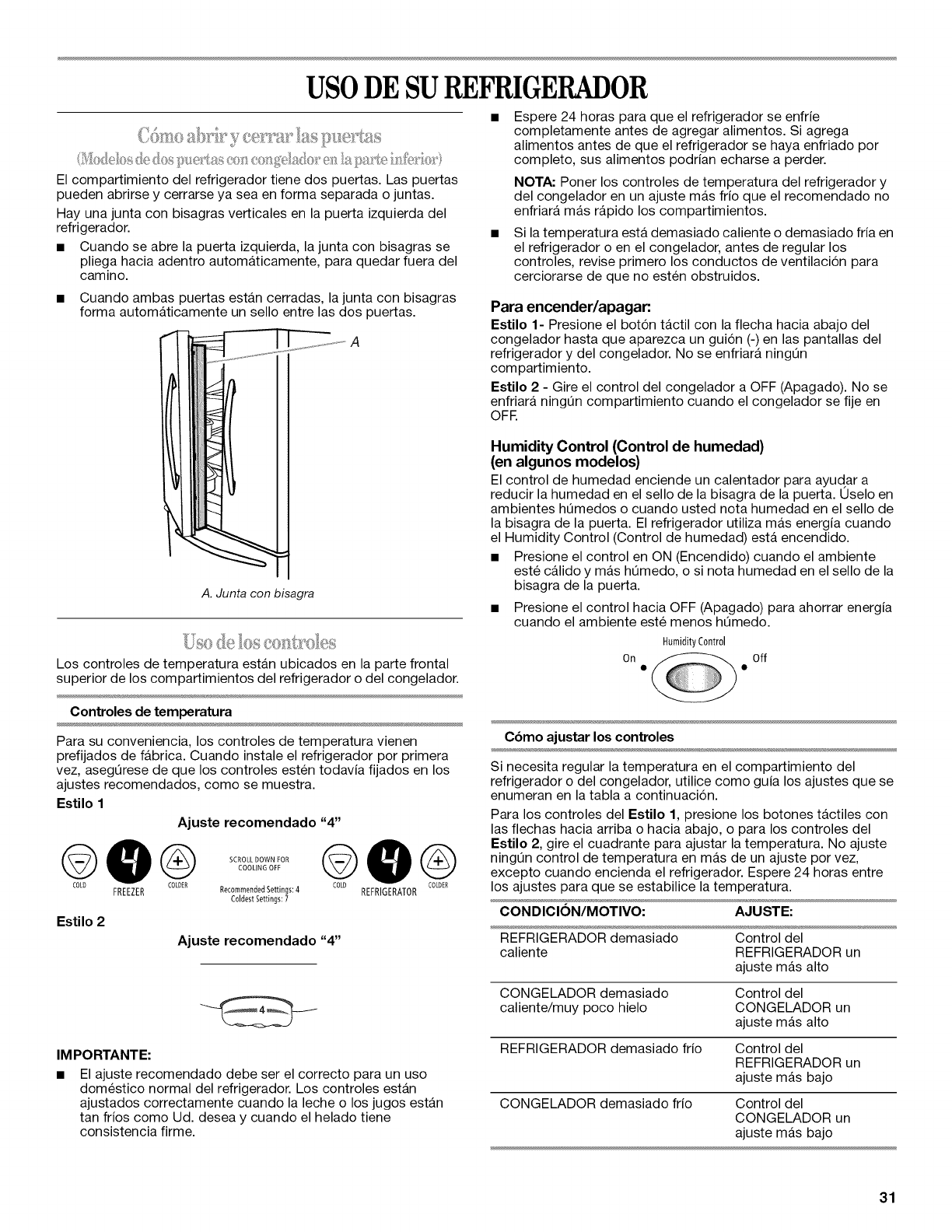USO DE SU REFRIGERADOR ...................... 31