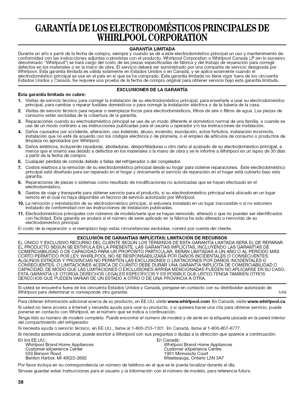 In Canada, visit our website at www.whirlpool.ca or call us at 1-800-807-6777.