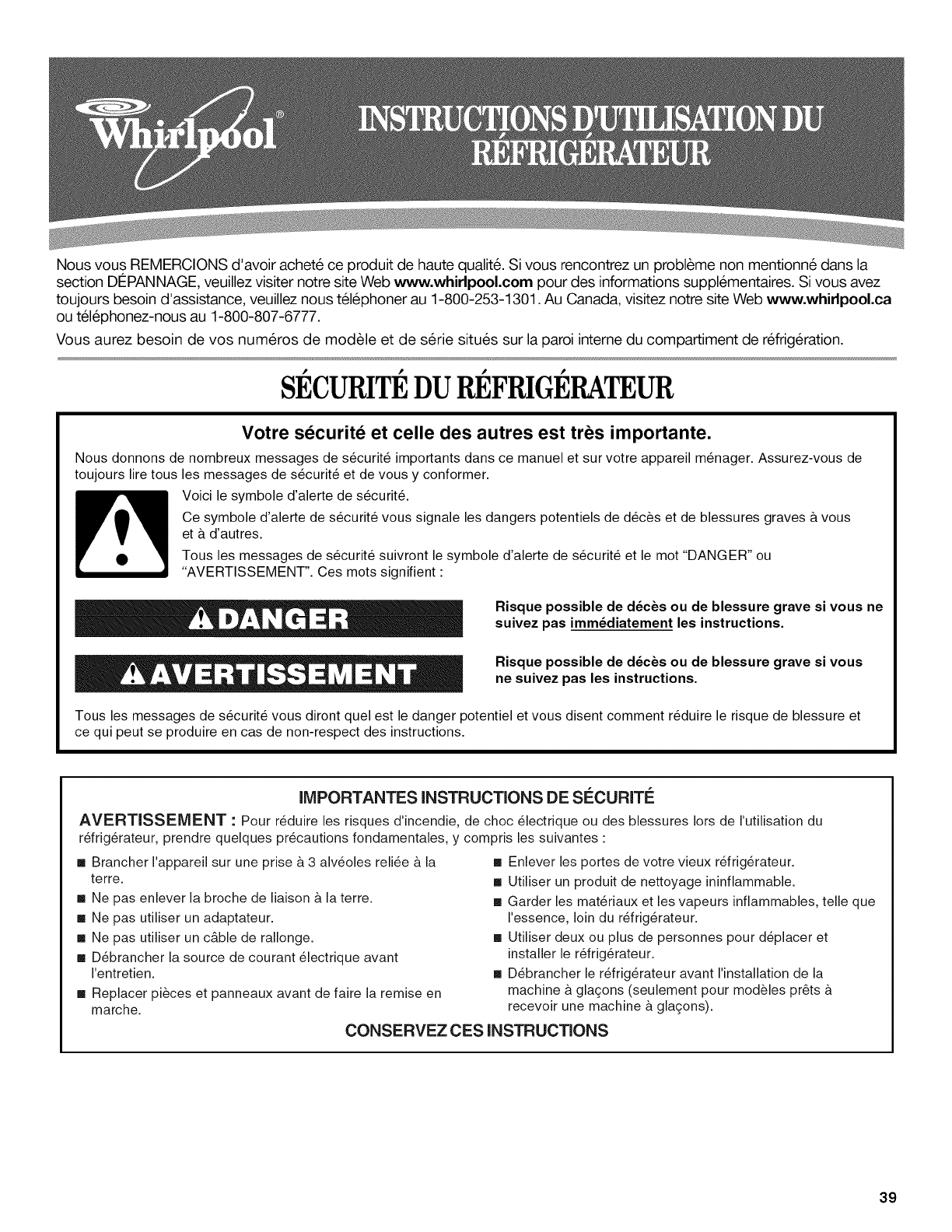 Pour des informations supplementaires sur le produit, aux #.-U., visiter www.whirlpool.com. Au Canada, visiter www.whirlpool.ca.