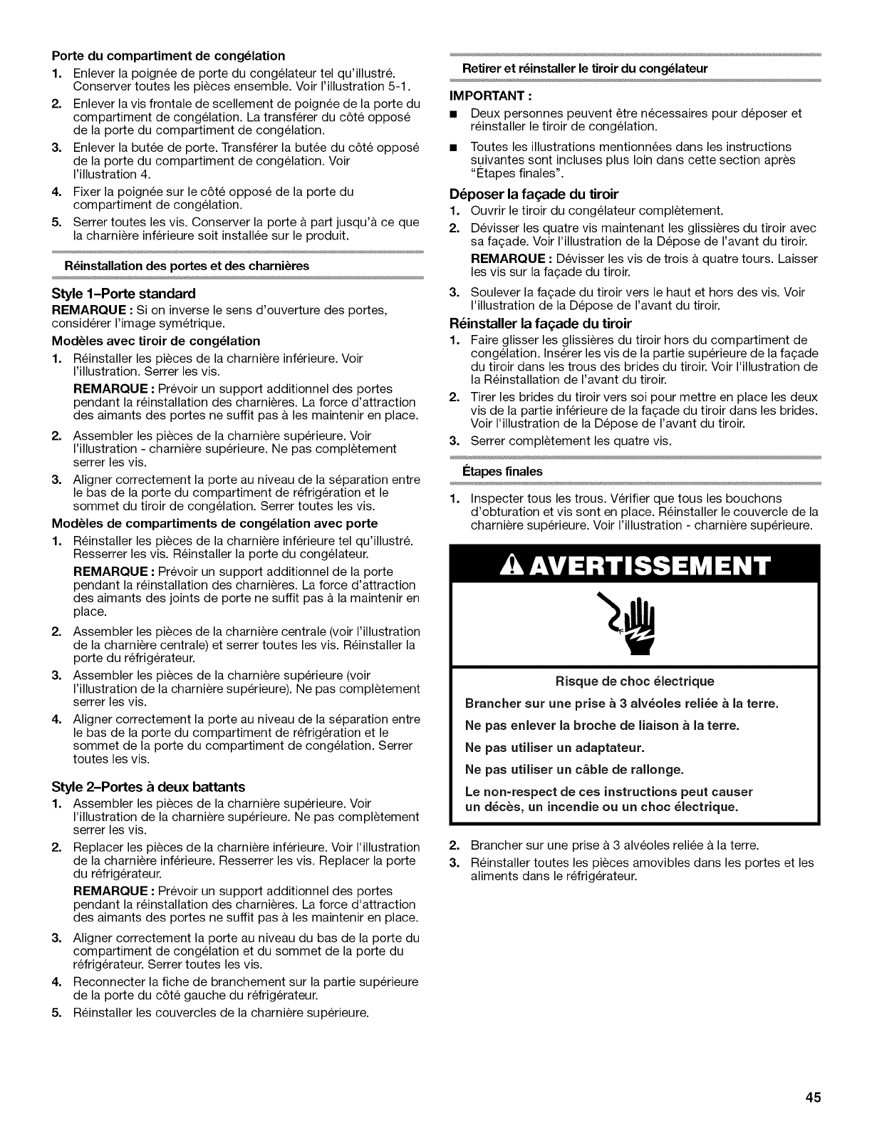 more information, see "Refrigerator Safety."