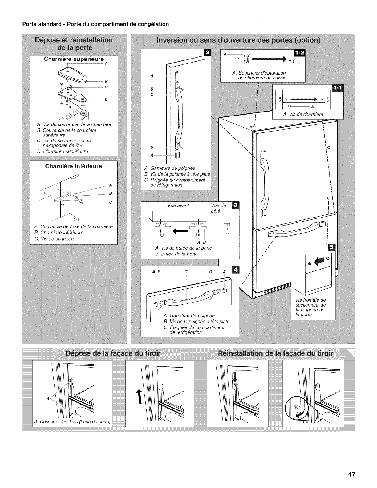 5. Les defauts apparents, notamment les eraflures, les bosses, fissures ou tout autre dommage au fini du gros appareil menager, h