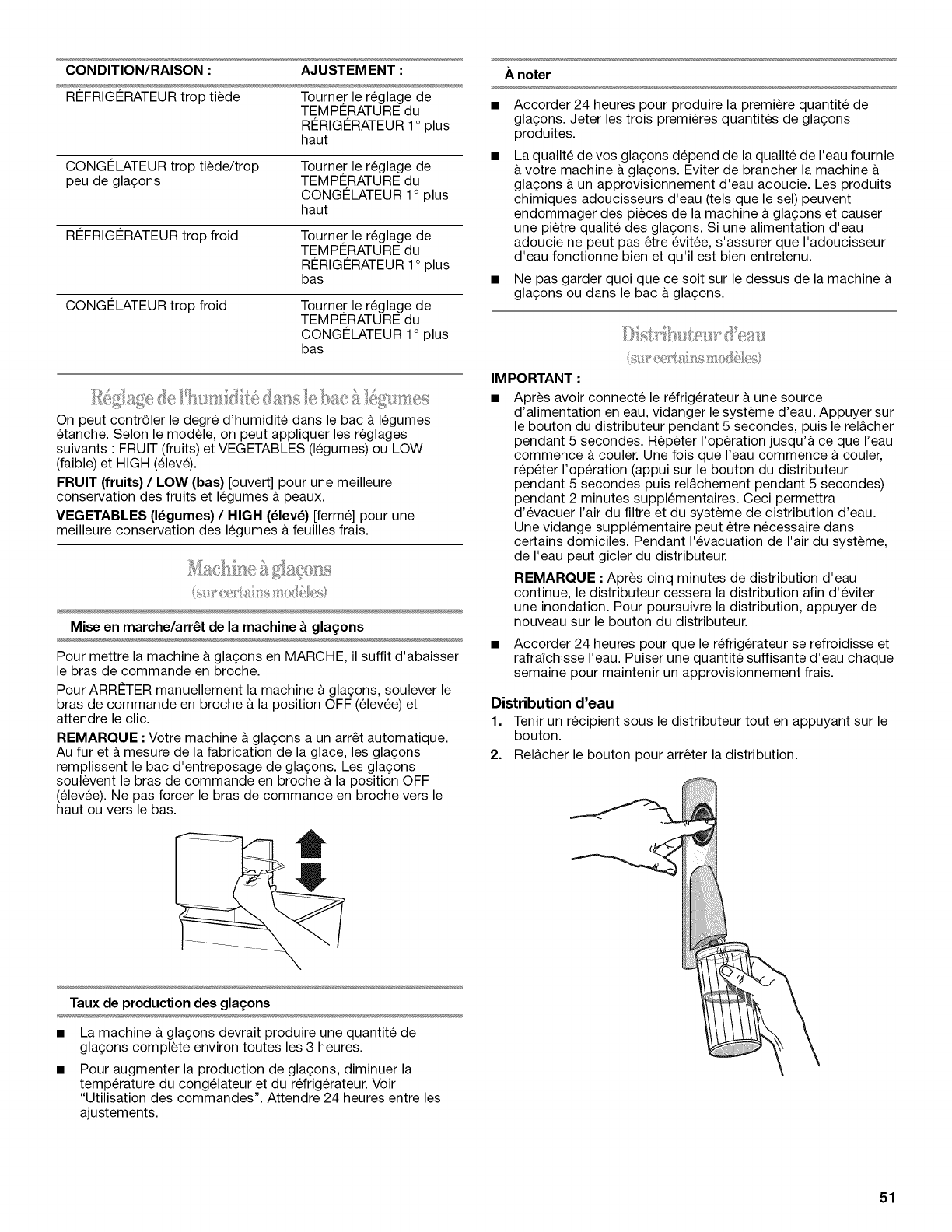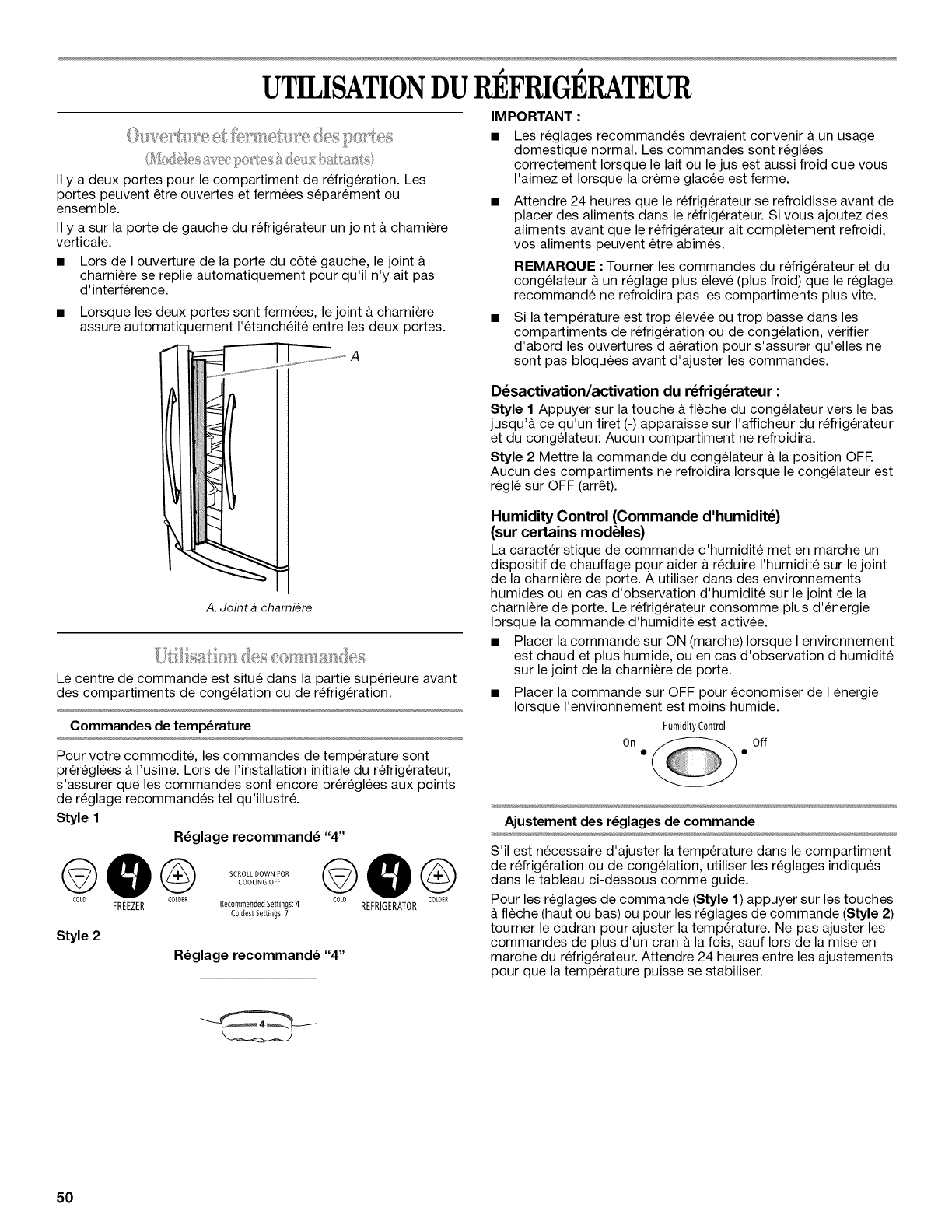 UTILISATION DU REFRIGERATEUR ........... 50