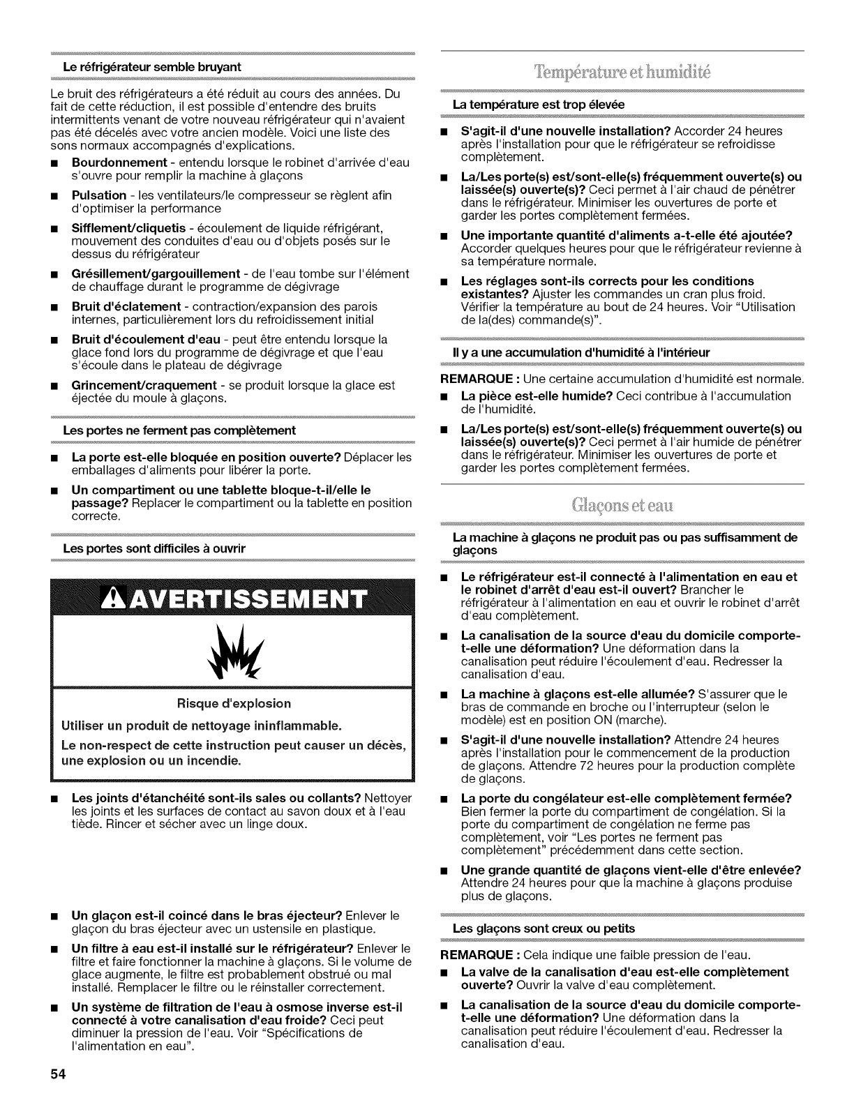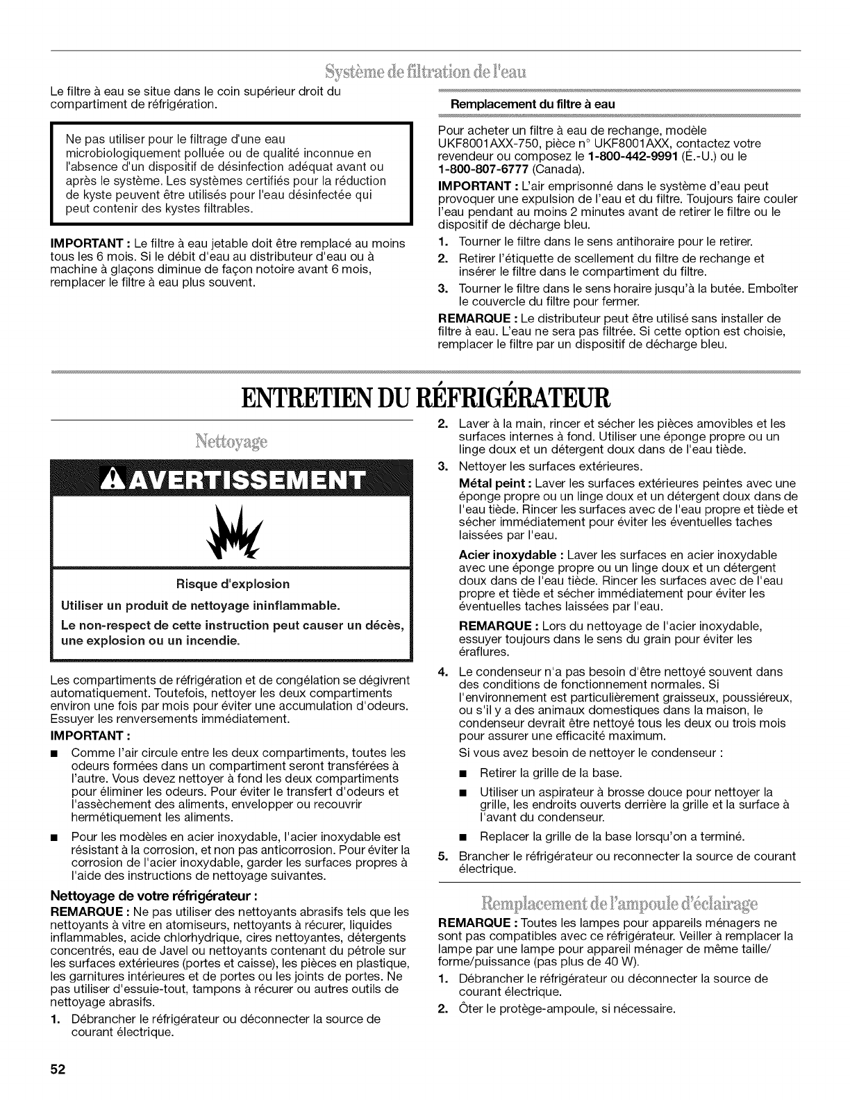 ENTRETIEN DU REFRIGERATEUR ............. 52