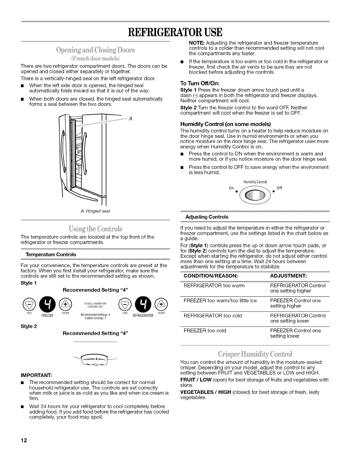REFRIGERATOR USE ................................... 12