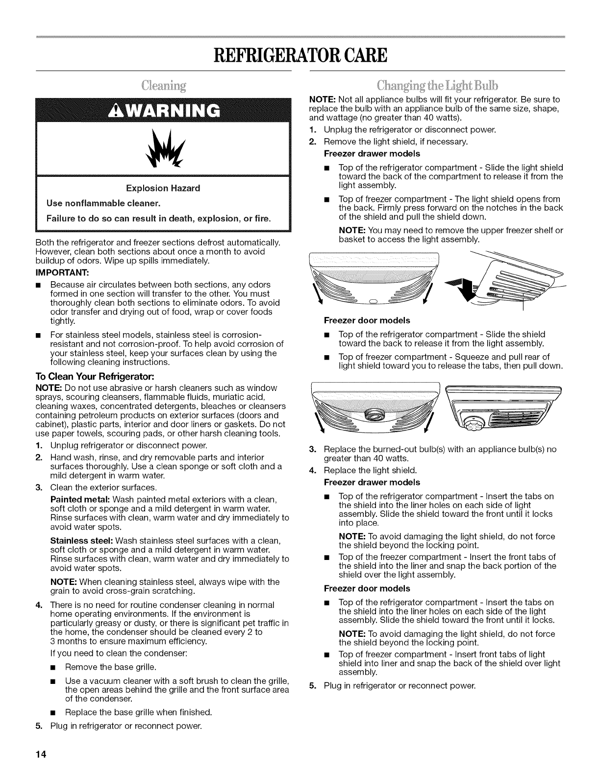 REFRIGERATOR CARE ................................. 14