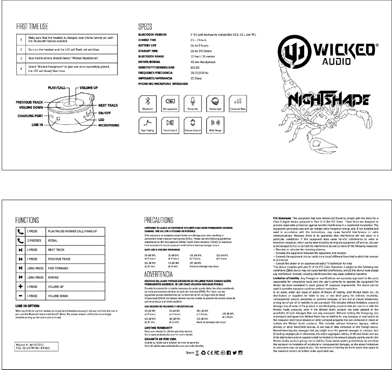 WICKED AUDIO WI-BT550 Bluetooth headset User Manual C8ABD2B3B4ABD5E6CDBCC6AC