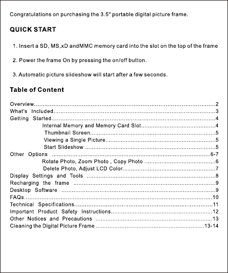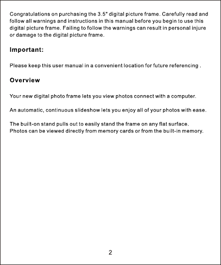 Win Accord 6210-35LG Digital Photo Frame User Manual