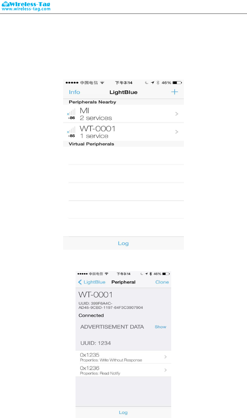 software LightBlue in IOS system, and you can also use our company‟s self-made Blurtooth serial APP