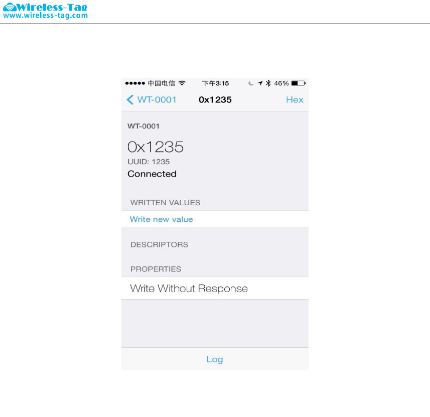 Click „Write new value‟, will enter into the communication field of Characteristic, write the