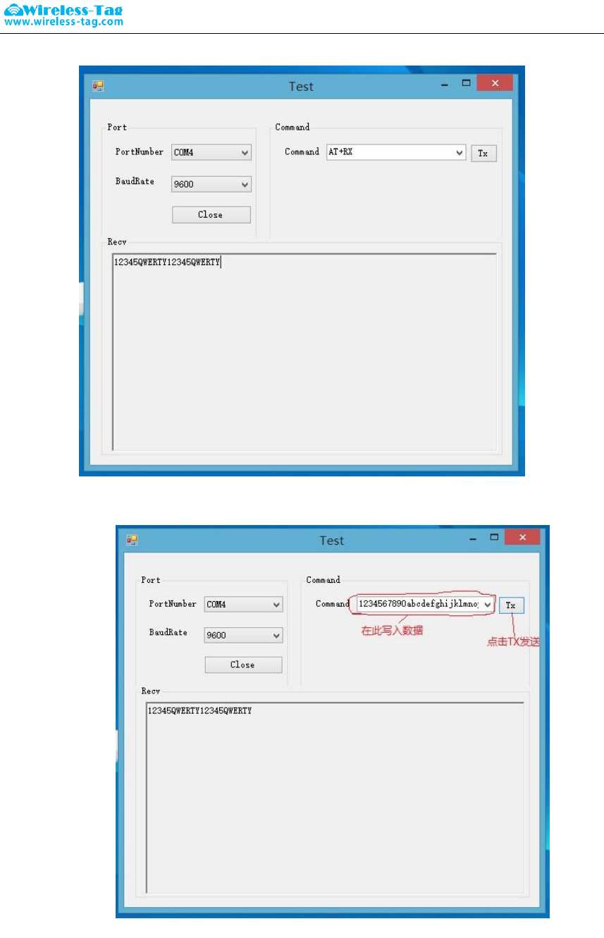 You can also use PC side debug tool to send data to the APP serial tool by module, APP display