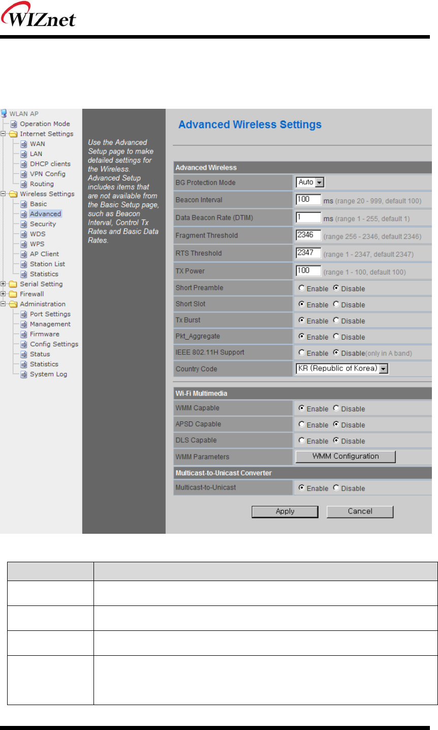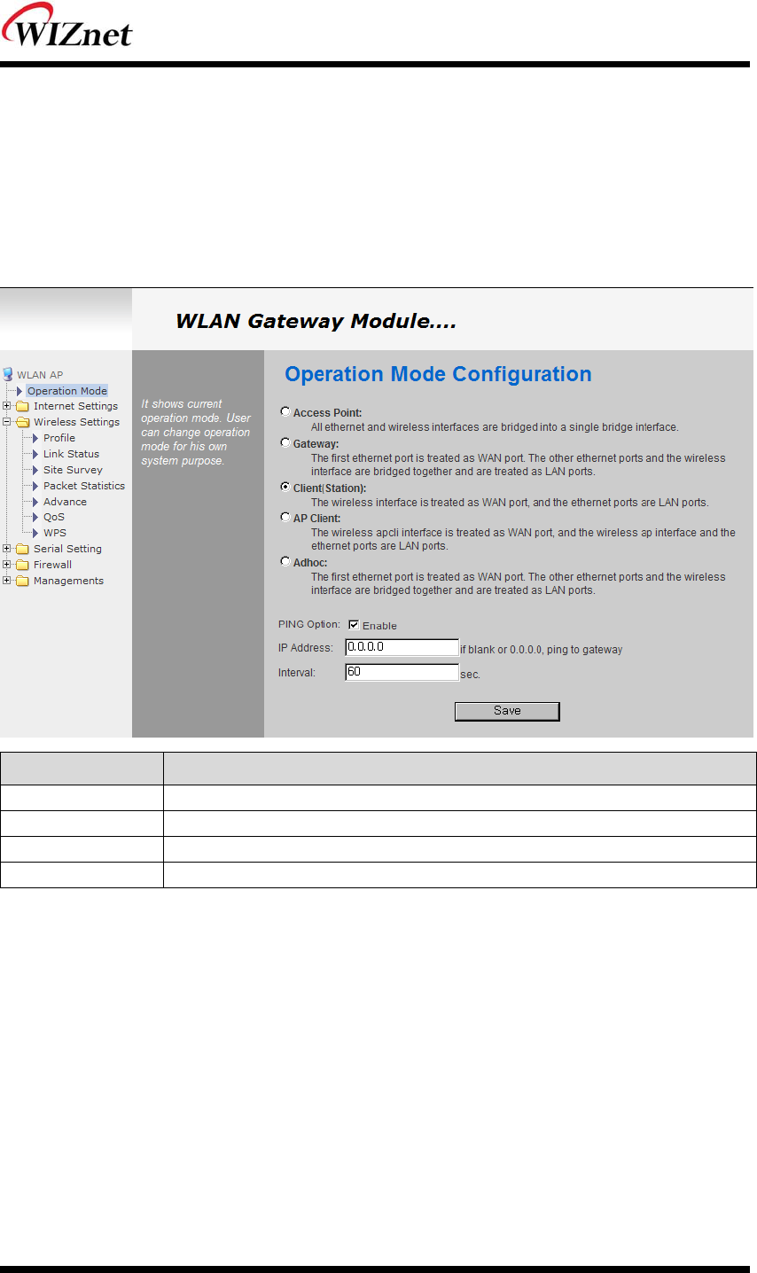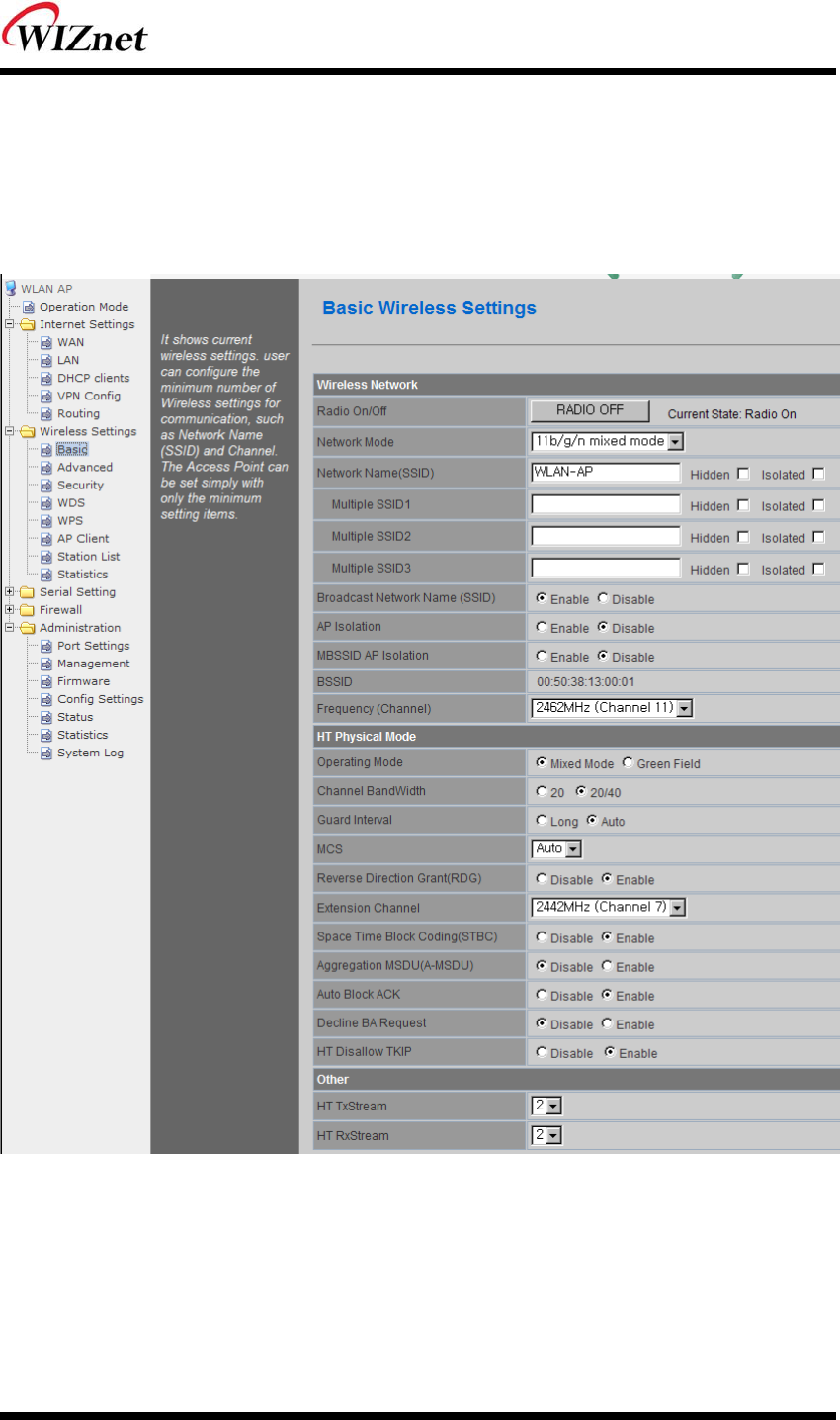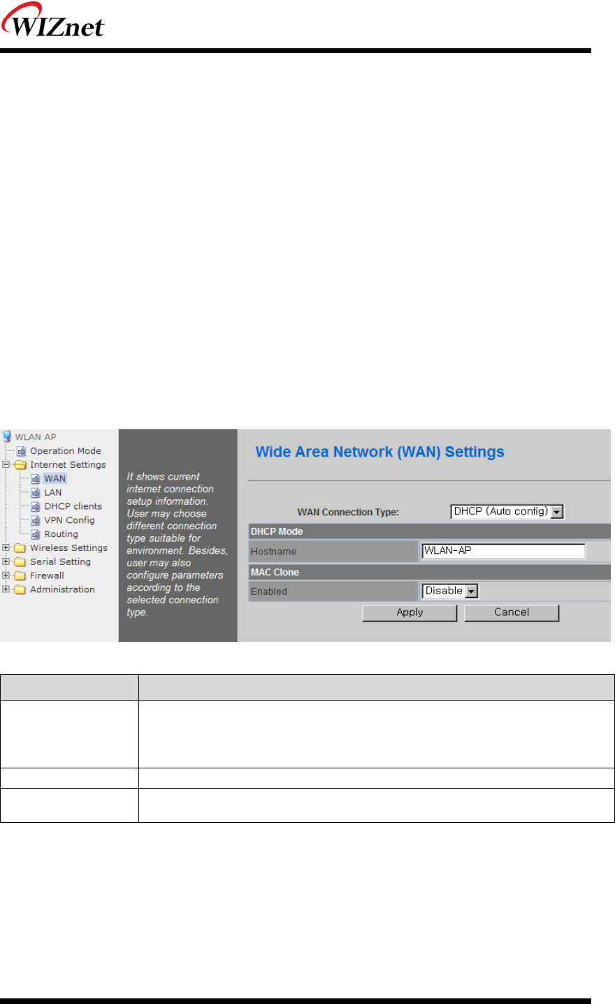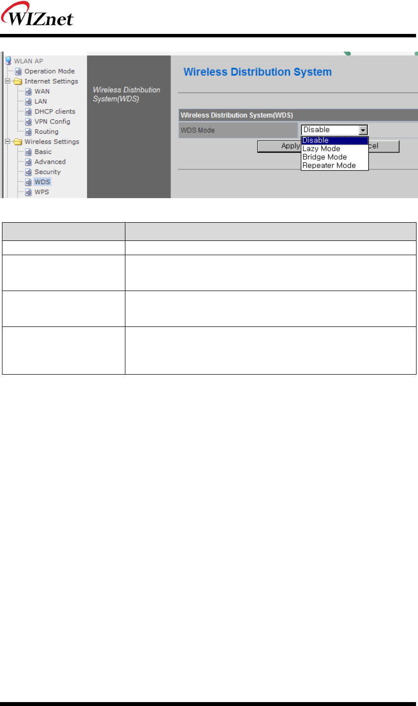 The default setting of WIZ630wi is AP Mode. (DHCP Server Enabled)