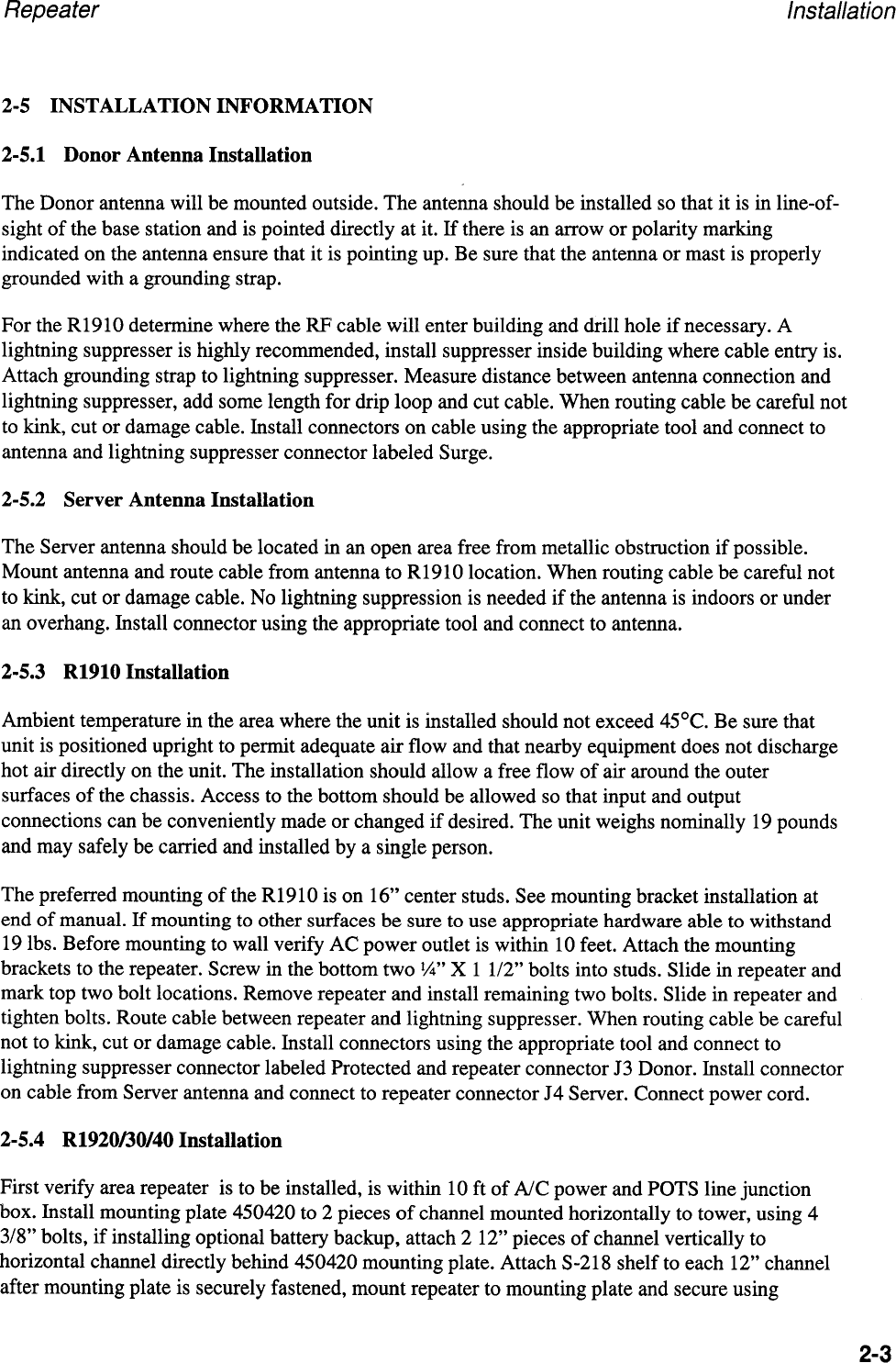WJ Communications R1910-1 Multi-channel Repeater User Manual