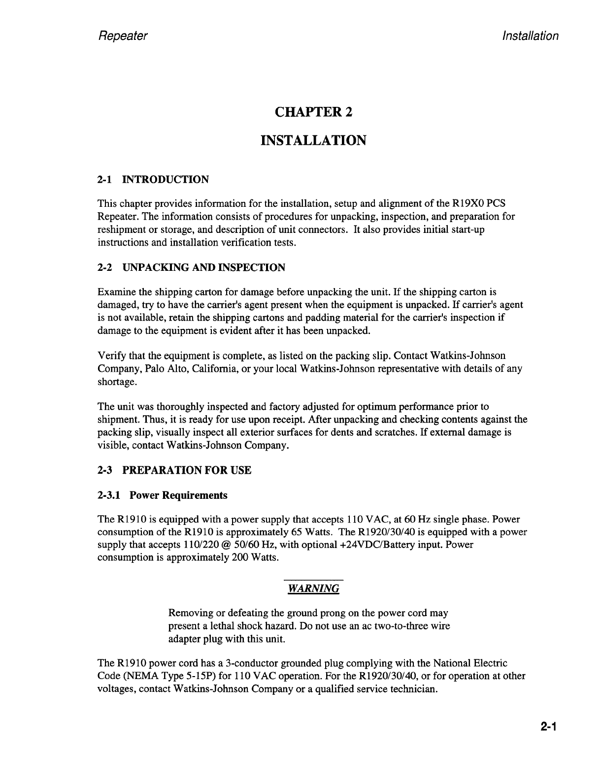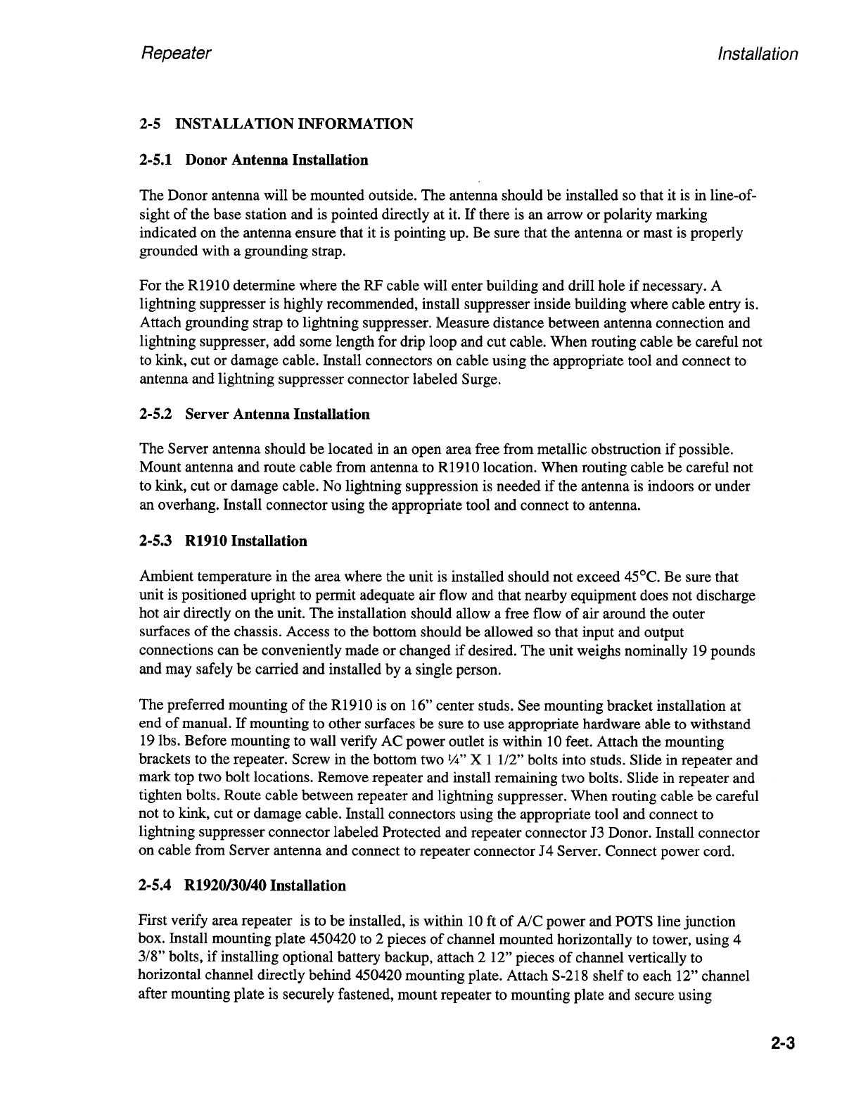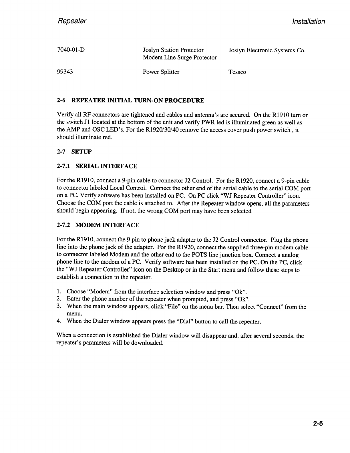 WJ Communications R1910-1 Multi-channel Repeater User Manual