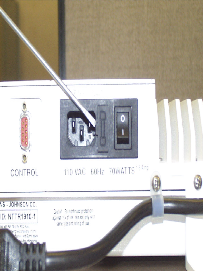 with a flatblade screwdriver, replace fuse, and snap back into position. Reconnect AC power cord