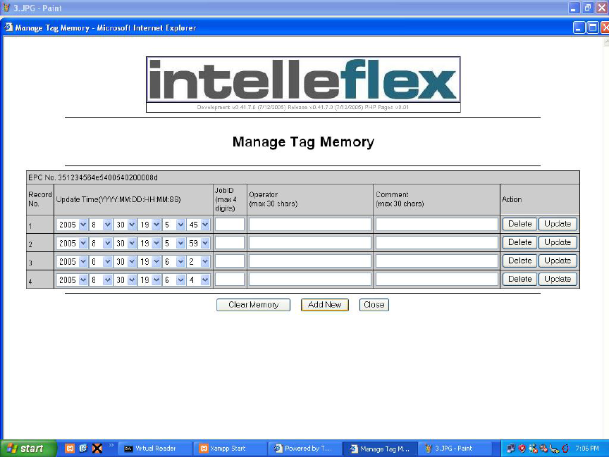 document “Intelleflex Middleware Application Programming Interface” for communication with the reader