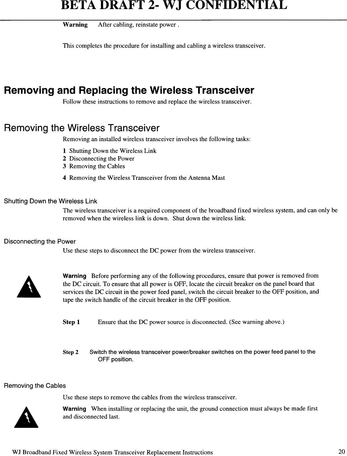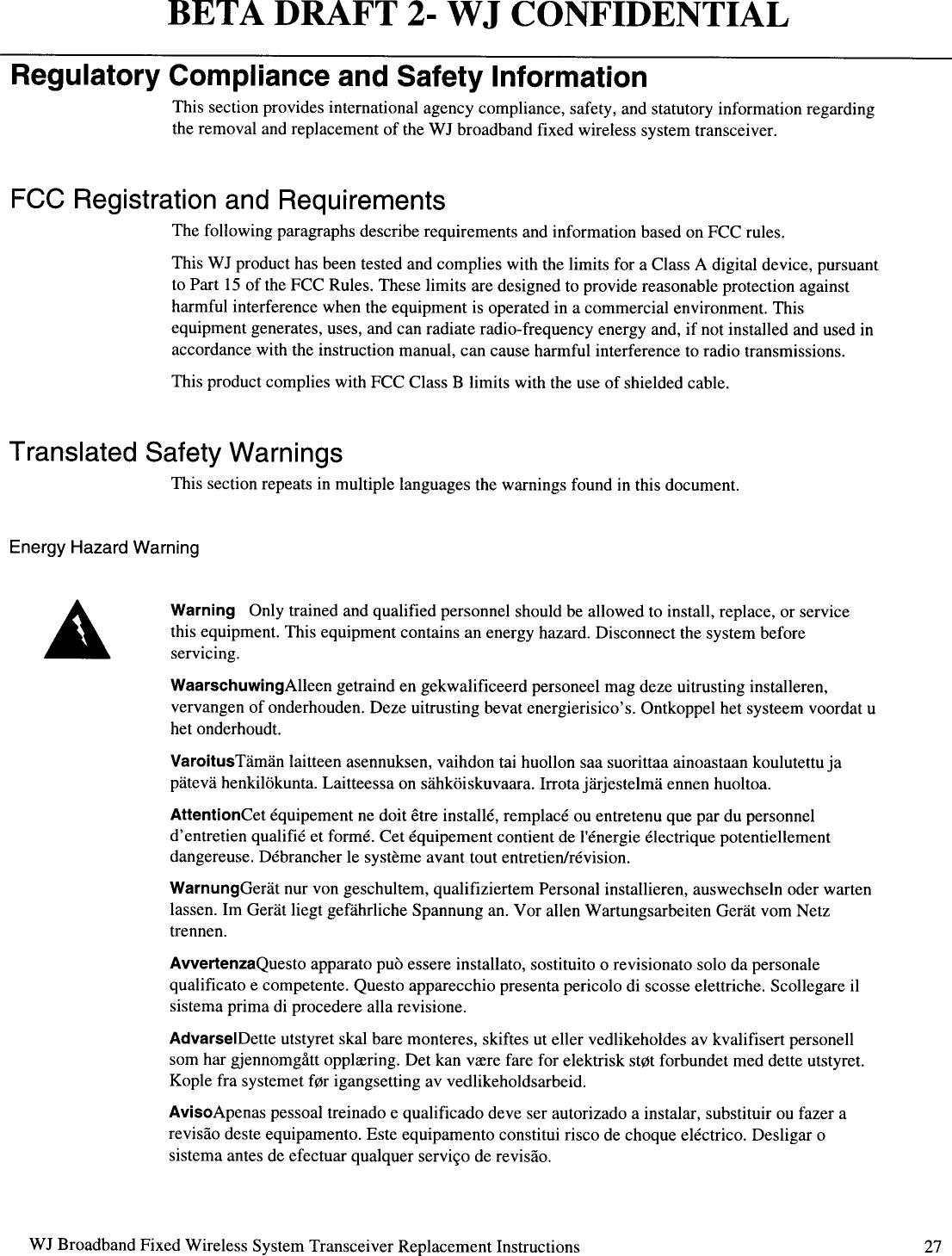 - 3. Hardware manual will be same for UNII but with MPE values shown in WJ test repor