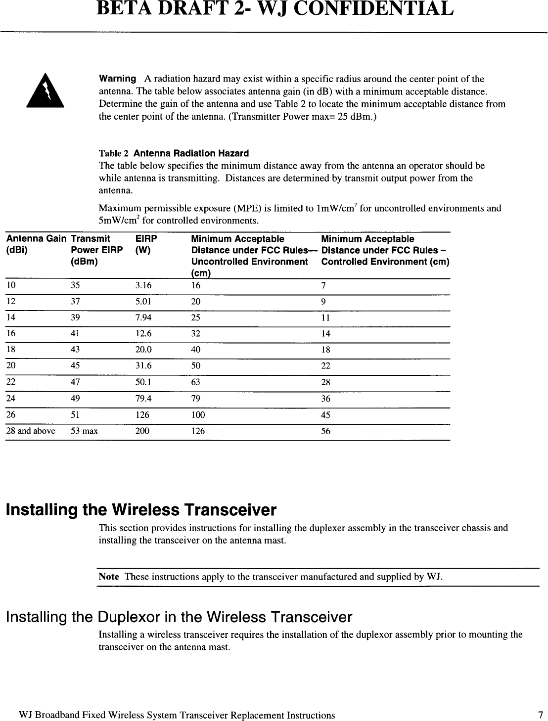 WJ Communications, Inc. WJ instruction manual with page 7 to be replaced